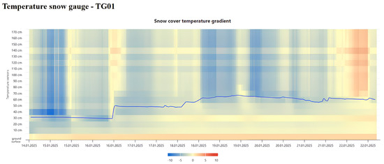 For visual representation and data analysis, the study involved constructing a temperature gradient along the thickness of the snow cover. The figure shows sharp temperature fluctuations within the snowpack, which may influence the formation and triggering of spontaneous avalanches (Figure 7).