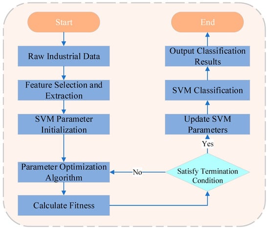 Furthermore, Zrar Kh. Abdul et al. [] developed a concat-SVM model based on Mel-Frequency Cepstral Coefficients (MFCC) and Gammatone Cepstral Coefficients (GTCC). They employed two types of global representations—feature concatenation and feature statistics—to feed data into the SVM, conducting experiments on two different datasets, PHM09 and DDS. Their results indicate that the concat-SVM model effectively addresses vibration fault detection in gears and helical gears, outperforming the other models tested. The superior performance of concat-SVM lies in its ability to comprehensively represent vibration signal features. Luigi Russo et al. [] proposed a One-Class Support Vector Machine (OC-SVM) method for the early detection of anomalies in steel mills, validated using the Pittini dataset. Their analysis showed that the OC-SVM model can be successfully applied for fault diagnosis in the steel industry. Hyunseong Lee et al. [] introduced an anomaly detection framework based on Support Vector Regression (SVR) for safety monitoring in commercial aircraft. By leveraging FDR datasets, they performed real-time anomaly detection and observed abrupt changes in monitored features; compared to recorded features, anomalies were flagged one to three seconds before the actual occurrence. Such algorithmic optimizations are aimed at refining complex solutions and streamlining the parameter selection process for SVM. These approaches demonstrate superior diagnostic performance compared to traditional SVM-based methods. Figure 3 provides a summary of the workflow for these methods.