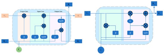 Recurrent Neural Networks (RNNs) trace their origins to the Hopfield Neural Network, in which the connections among network nodes form a directed graph over time. This design grants RNNs a unique advantage in handling time-series data. However, due to the long-range dependencies inherent in RNNs, gradient vanishing and exploding gradients can occur during training []. Consequently, most RNN-based methods in fault diagnosis heavily rely on improved variants, such as LSTM [] and GRU [], as illustrated in Figure 7.