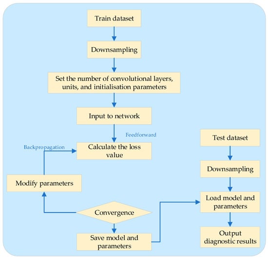 A DBN is capable of extracting meaningful fault features from feature sets constructed for specific tasks. Tamilselvan et al. [] extracted both time-domain and frequency-domain features from collected multivariate time series and applied these features to DBN training, successfully classifying aircraft engine faults. Likewise, Haizhou Chen et al. [] employed the Intrinsic Mode Functions (IMFs) derived from vibration signals processed by Ensemble Empirical Mode Decomposition (EEMD) to form a low-dimensional feature set, which they then used as DBN input.