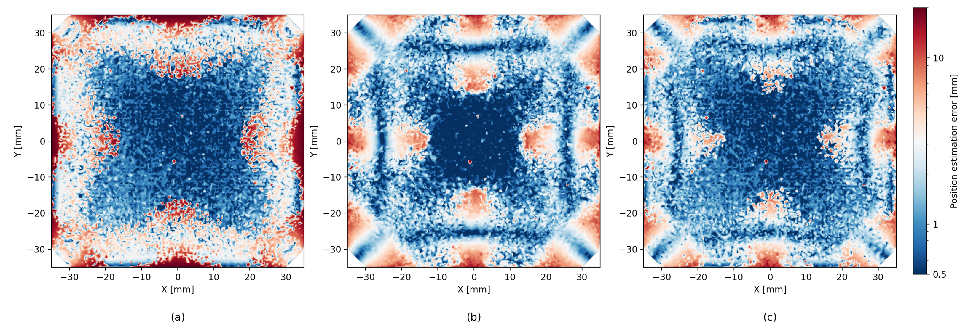 - Daniel, G.; Yahiaoui, M.B.; Comtat, C.; Jan, S.; Kochebina, O.; Martinez, J.M.; Sergeyeva, V.; Sharyy, V.; Sung, C.H.; Yvon, D. Deep Learning reconstruction with uncertainty estimation for γ photon interaction in fast scintillator detectors. Eng. Appl. Artif. Intell. 2024, 131, 107876. [Google Scholar] [CrossRef]