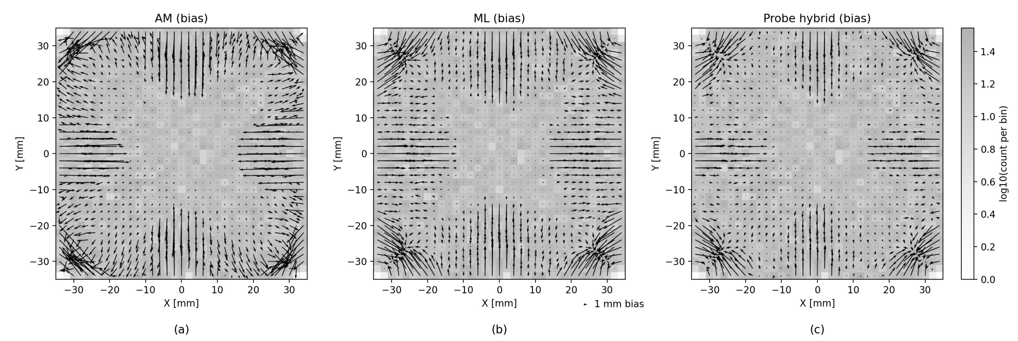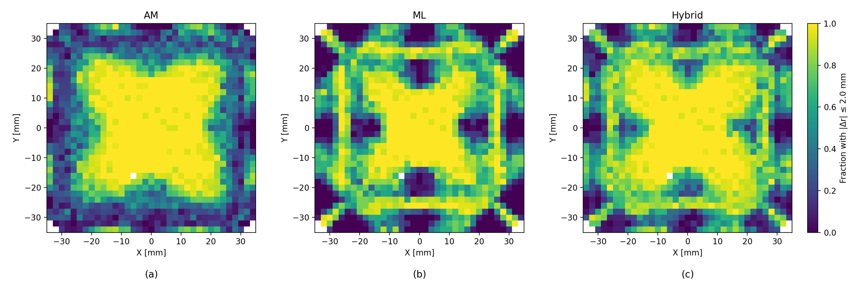 - Muon dataset: simulated 4 GeV muons with randomized incidence positions and angles.