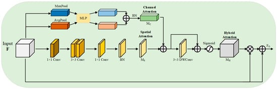 The hybrid attention feature map is formed by aggregating channel attention and spatial attention . The specific process can be expressed as follows: