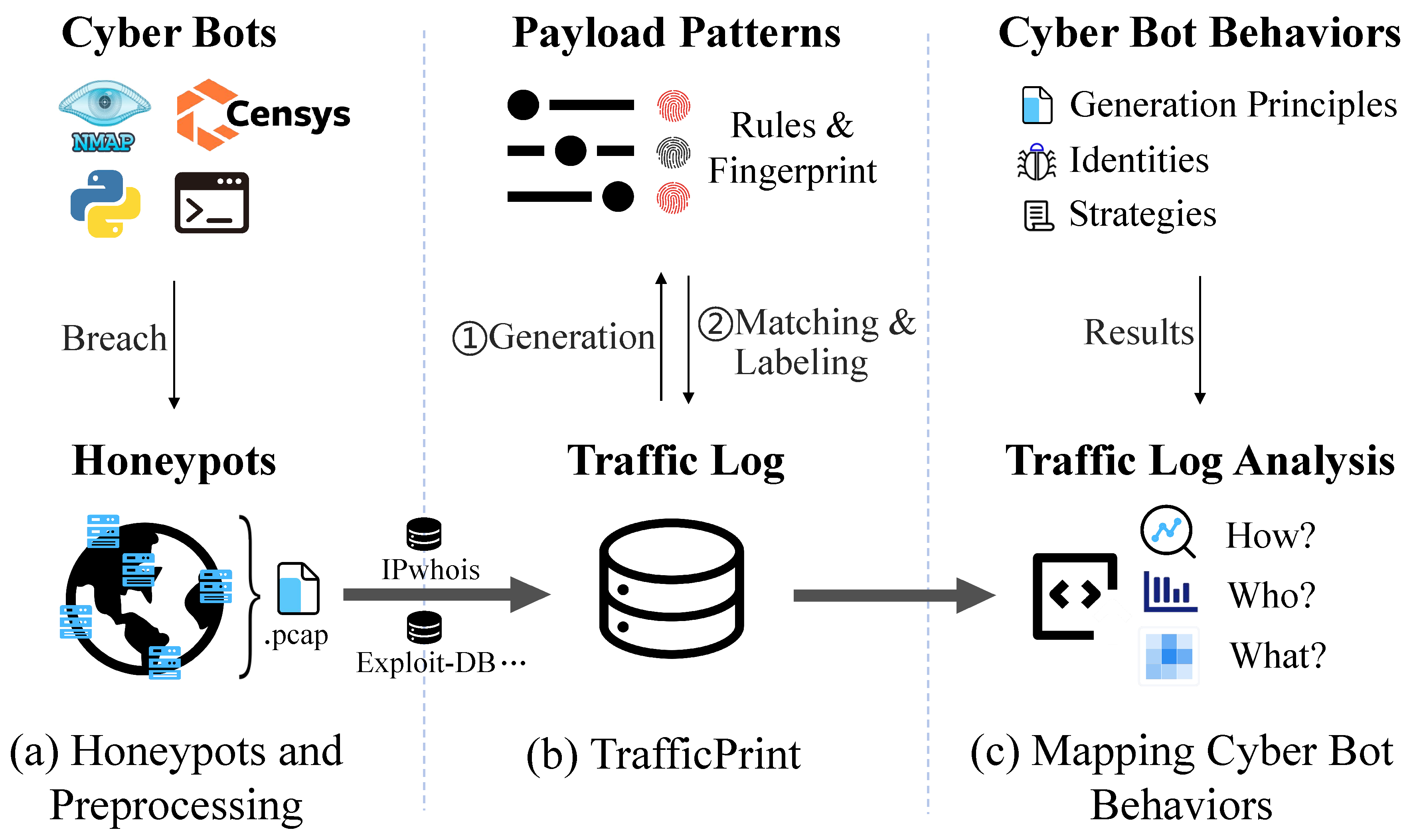 We identify distinct cyber bot strategies by analyzing the extracted payload patterns. Through careful observation of both payload pattern content and associated traffic log metadata (such as protocol, port, IP, and timestamps) combined with domain expertise in cybersecurity, we classify these behaviors into five distinct categories. Our classification is derived from recognizable attack signatures, command structures, and interaction patterns observed across the dataset.