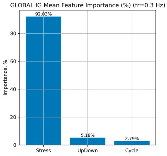 In this study, the machine learning models were interpreted using the Integrated Gradient (IG) method [73,74], which belongs to the class of Explainable Artificial Intelligence (XAI) techniques. Its application made it possible not only to quantitatively assess the contribution of individual features to the model’s decision-making process but also to enhance the transparency and credibility of the obtained results. The Integrated Gradients method computes the contribution of each feature to the model’s prediction by integrating the gradients of the output function along a straight-line path between a baseline (neutral) input and the actual input vector.