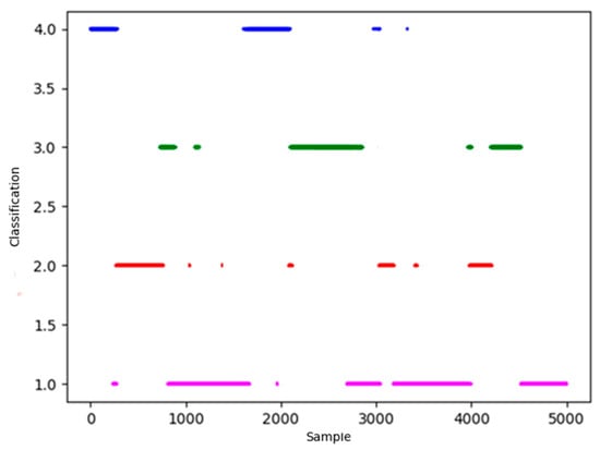 Based on the combination of trained VAE-WRBM-MDN model and density peak algorithm, actual Relative state estimation data is processed and the Relative state estimation situation of each time period is classified. Furthermore, the classified results are compared with actual flight conditions to deeply analyze the Relative state estimation situation. Specific output results are shown in Figure 17 and Figure 18.