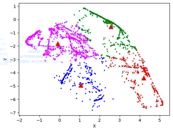 After extracting low-dimensional latent features, we apply clustering algorithms to group them into distinct situational classes. We selected two representative algorithms: k-means++, as a robust and widely used baseline, and the density peak algorithm, which is adept at identifying clusters of arbitrary shapes and is less sensitive to initialization. The number of clusters was set to four, a choice directly motivated by the established air combat doctrine described in Section 2.2, which provides a tactically meaningful and interpretable partitioning of the situation space.