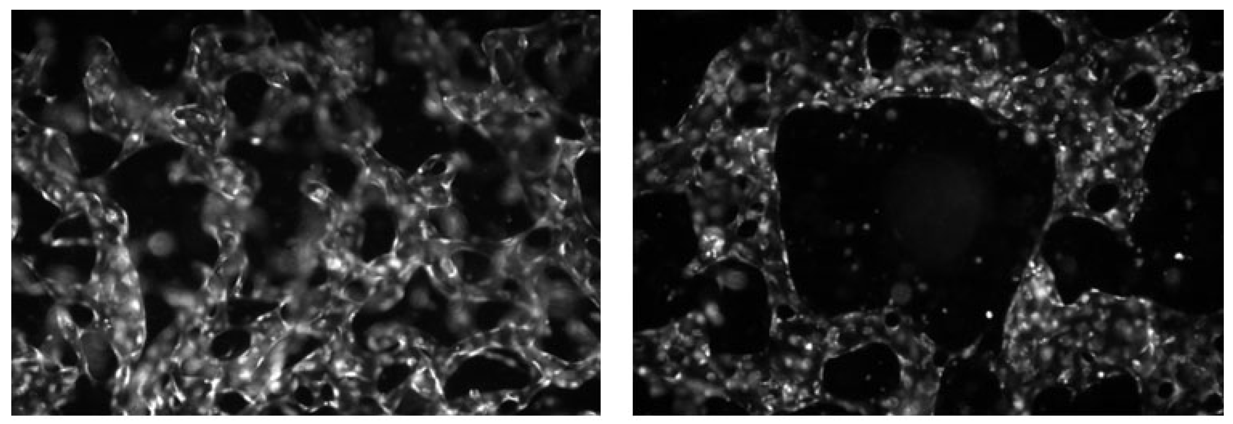 The data used in this study were provided by the Korea Basic Science Institute (KBSI), where both image acquisition and labeling were performed by domain experts. The normal and abnormal labels were assigned based on vascular morphological characteristics. In these experiments, breast cancer spheroids, human umbilical vein endothelial cells (HUVEC), and breast fibroblasts were co-cultured within the same microfluidic chip to replicate the tumor microenvironment. Fixed samples were imaged using a fluorescence microscope, and the acquired data were saved as TIFF-format multichannel images. In this study, only the channel representing vasculature was separated and used among all fluorescence channels. Representative examples of normal and abnormal vasculature are shown in Figure 6.