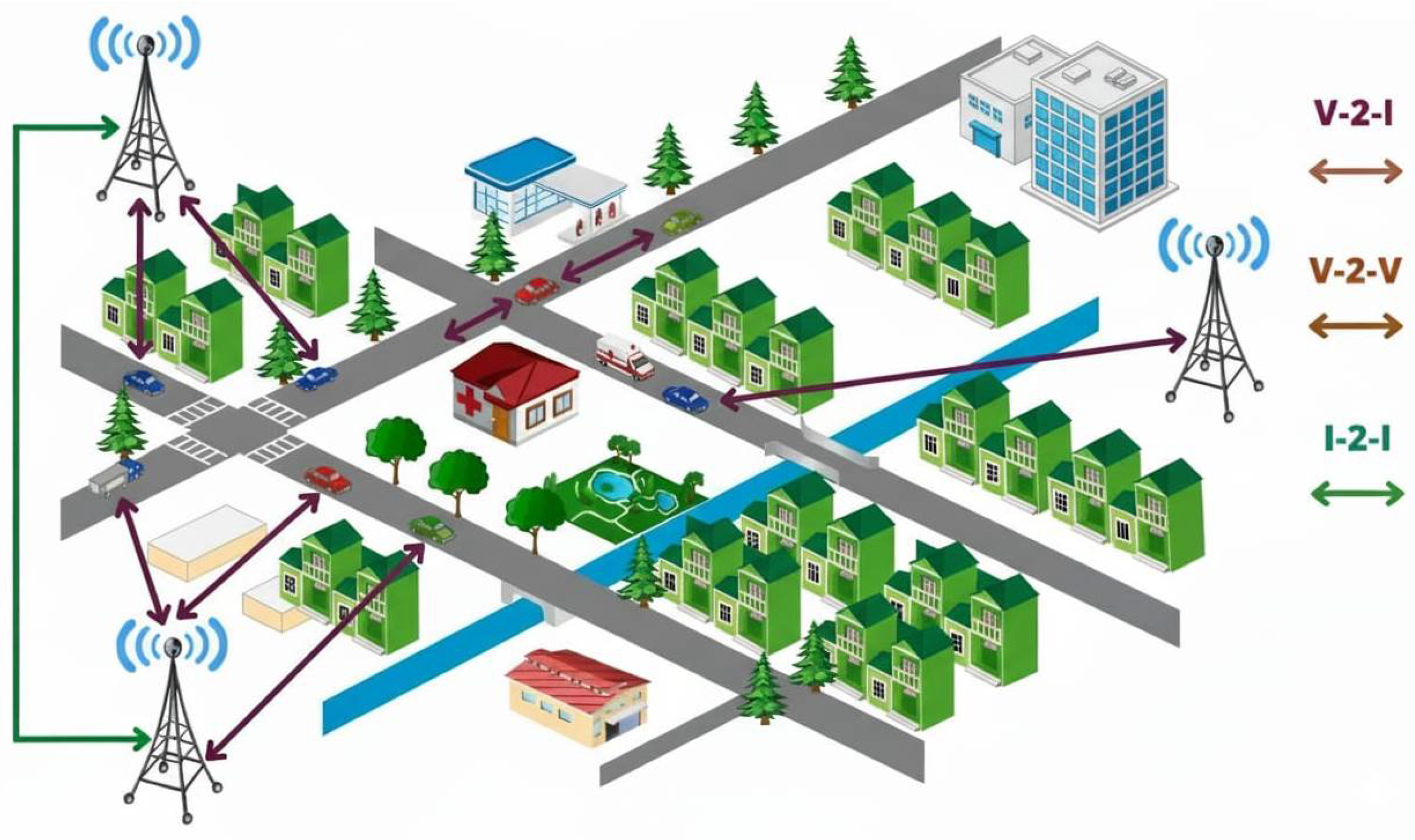 Figure 1), which helps in co-ordinating safety, anticipating congestion, and aiding traffic control. VANETs are made use of for the more efficient and responsive communication of Vehicle-to-Vehicle (V2V) and Vehicle-to-Infrastructure (V2I) and thus, cooperative driving and emergency response to a vehicle become convenient and very effective. Nonetheless, their highly dynamic character, such as constant alterations in topology, erratic connectivity and a wide range of mobility behavior, pose a great challenge to routing. The unstable links, redundancy in broadcasts and higher control overhead can result in degraded packet delivery and longer end-to-end delays. Reliability, scalability, and energy efficiency under these volatilities are an open problem.