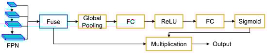 We add the SE module to the segmentation header part of the semantic segmentation network, and the segmentation header part of the added module is shown in Figure 4. SE module is the orange section.