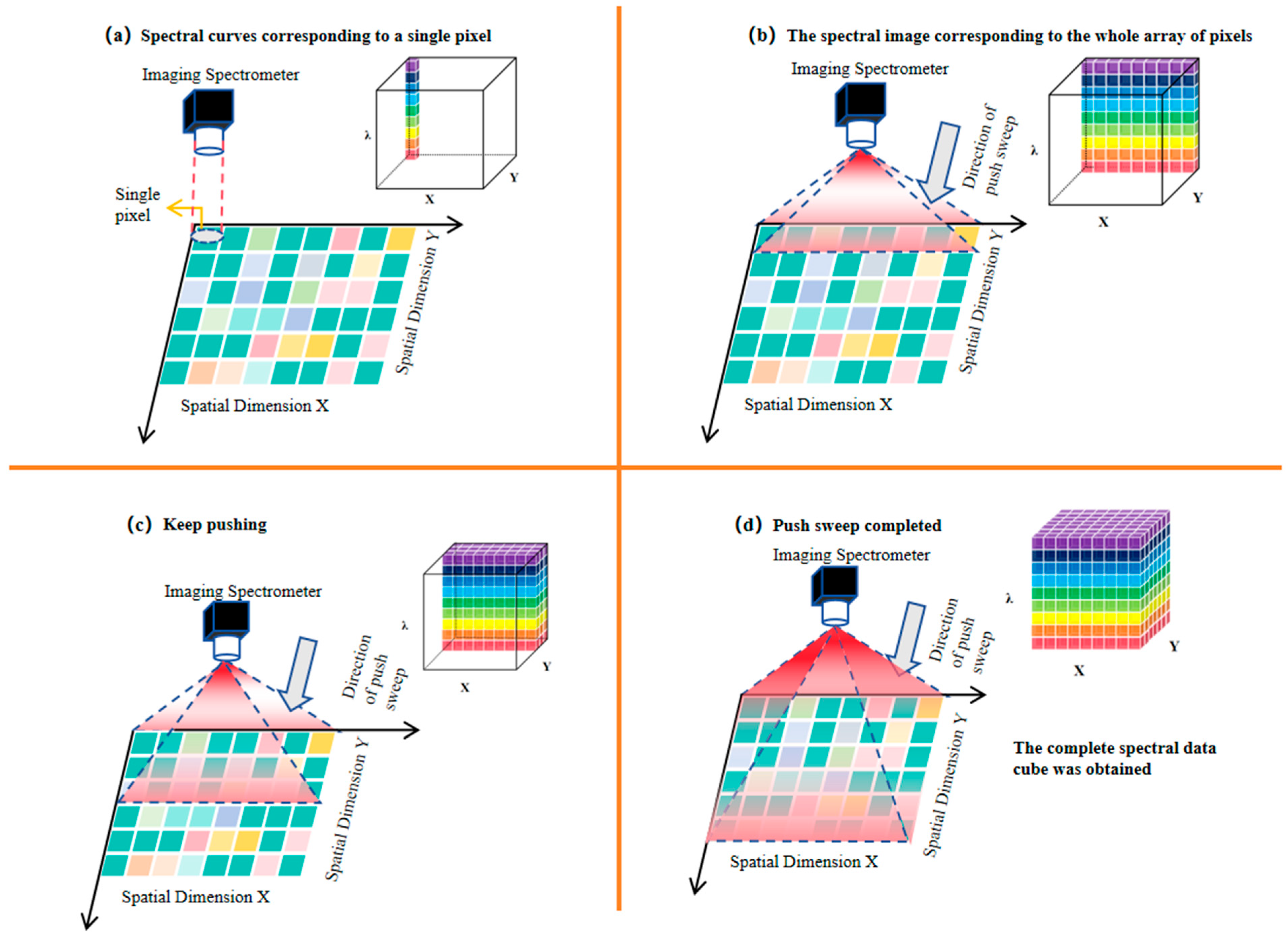 - The AHG-101 hyperspectral imager operated at the following imaging parameters: aperture of f/5.6, integration time of 5 ms, spectral resolution of 1 nm, and spatial resolution of 960 × 960 pixels.