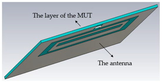 All the dielectric properties of the simulated layers are provided in Table 1. A layer thickness of 1 mm is employed at this stage. The antenna with the materials under test is shown in Figure 3.