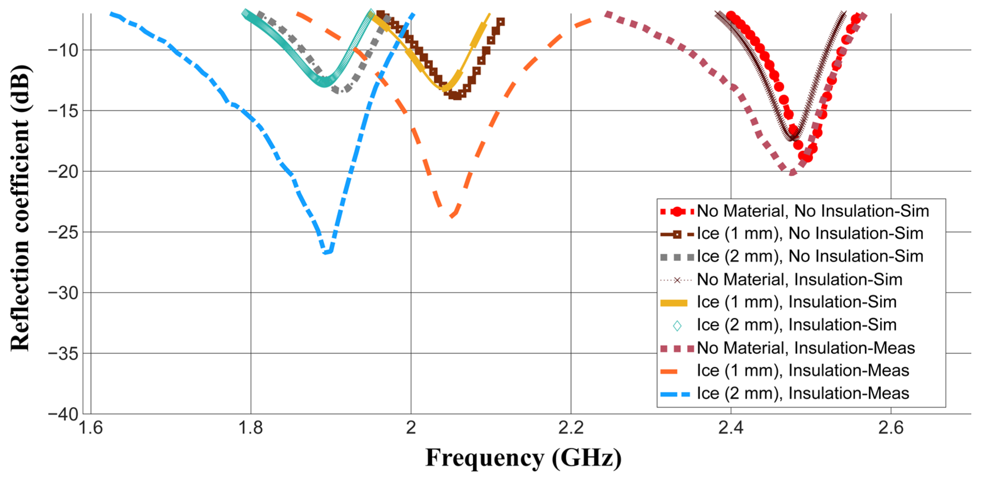 - Simulated results with the insulation layer, taking into account its actual thickness and dielectric properties provided above.
