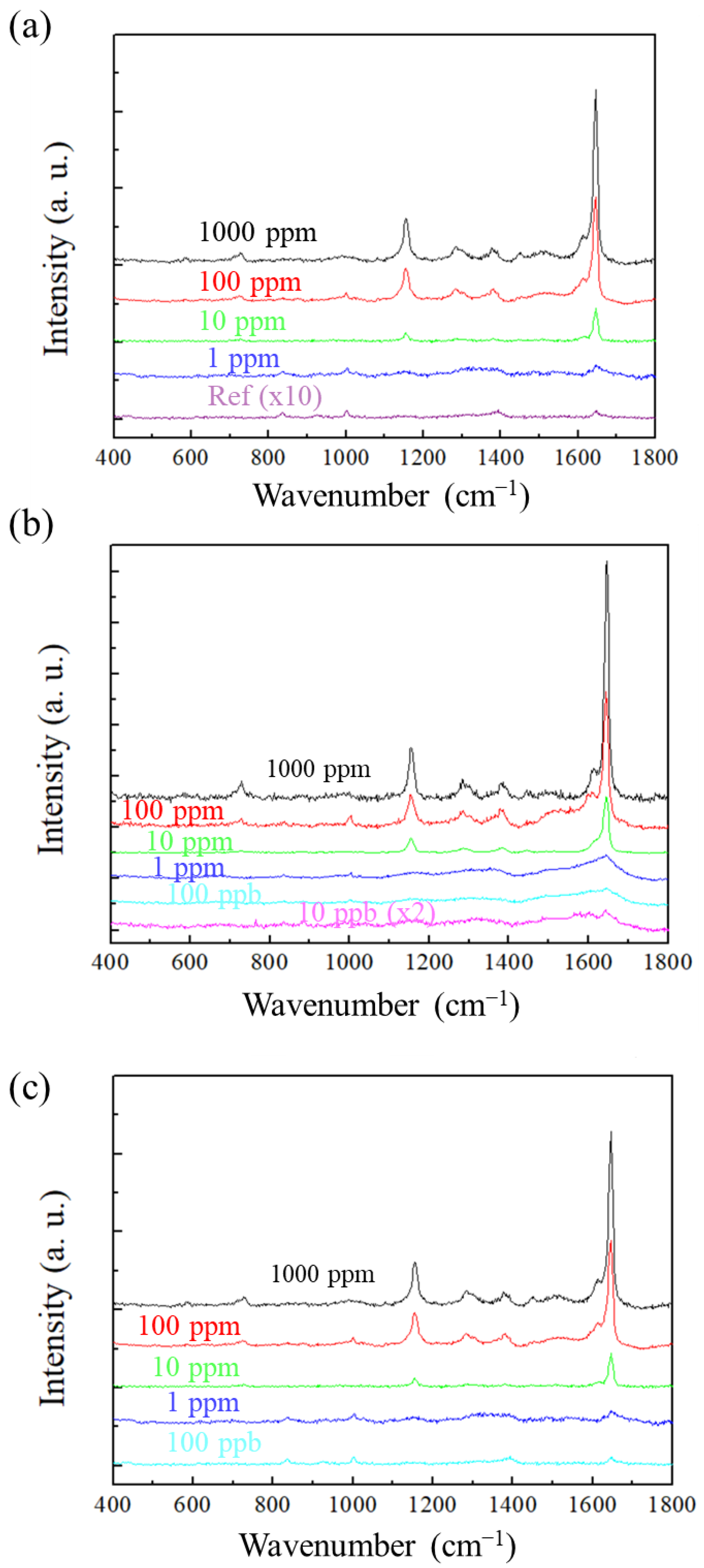 - Luo, Y.; Jing, Q.; Li, C.; Liang, A.; Wen, G.; He, X.; Jiang, Z. Simple and sensitive SERS quantitative analysis of sorbic acid in highly active gold nanosol substrate. Sens. Actuators B Chem. 2018, 255, 3187–3193. [Google Scholar] [CrossRef]