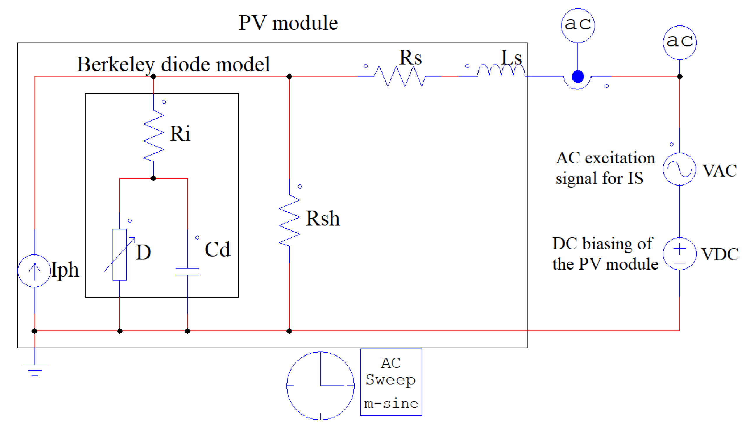 13] proposed a methodology to characterize the dynamic behavior of PV cells under controlled laboratory conditions using IS, integrating the diode’s dynamic capacitance and conductance into an enhanced single-diode model (SDM) based on the Berkeley SPICE representation [