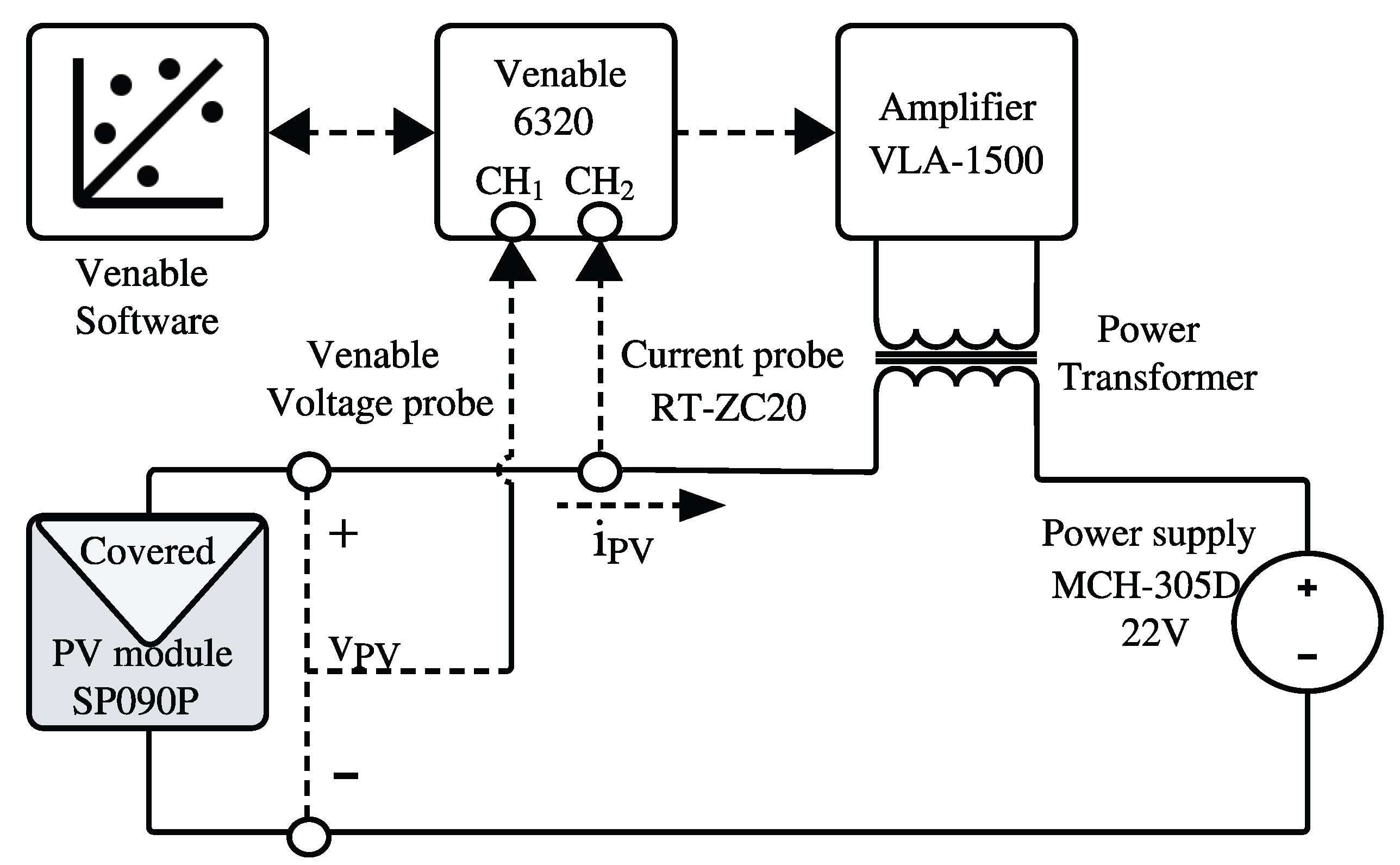 Figure 11. The Venable FRA controls the associated amplifier and power transformer to produce the IS excitation signal, while the power supply sets the operating point of the PV module. Finally, the FRA captures the IS data to be stored in a computer.