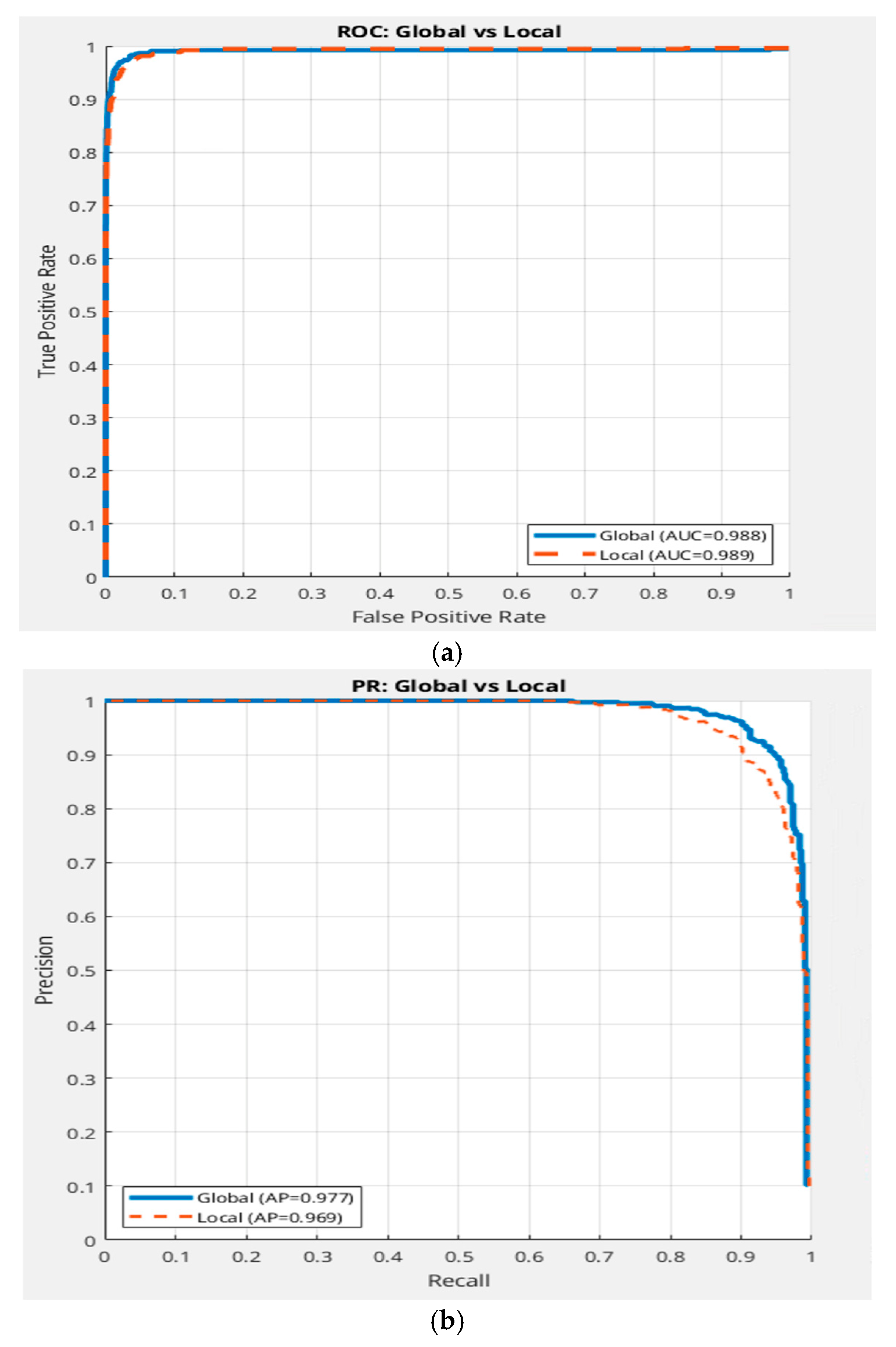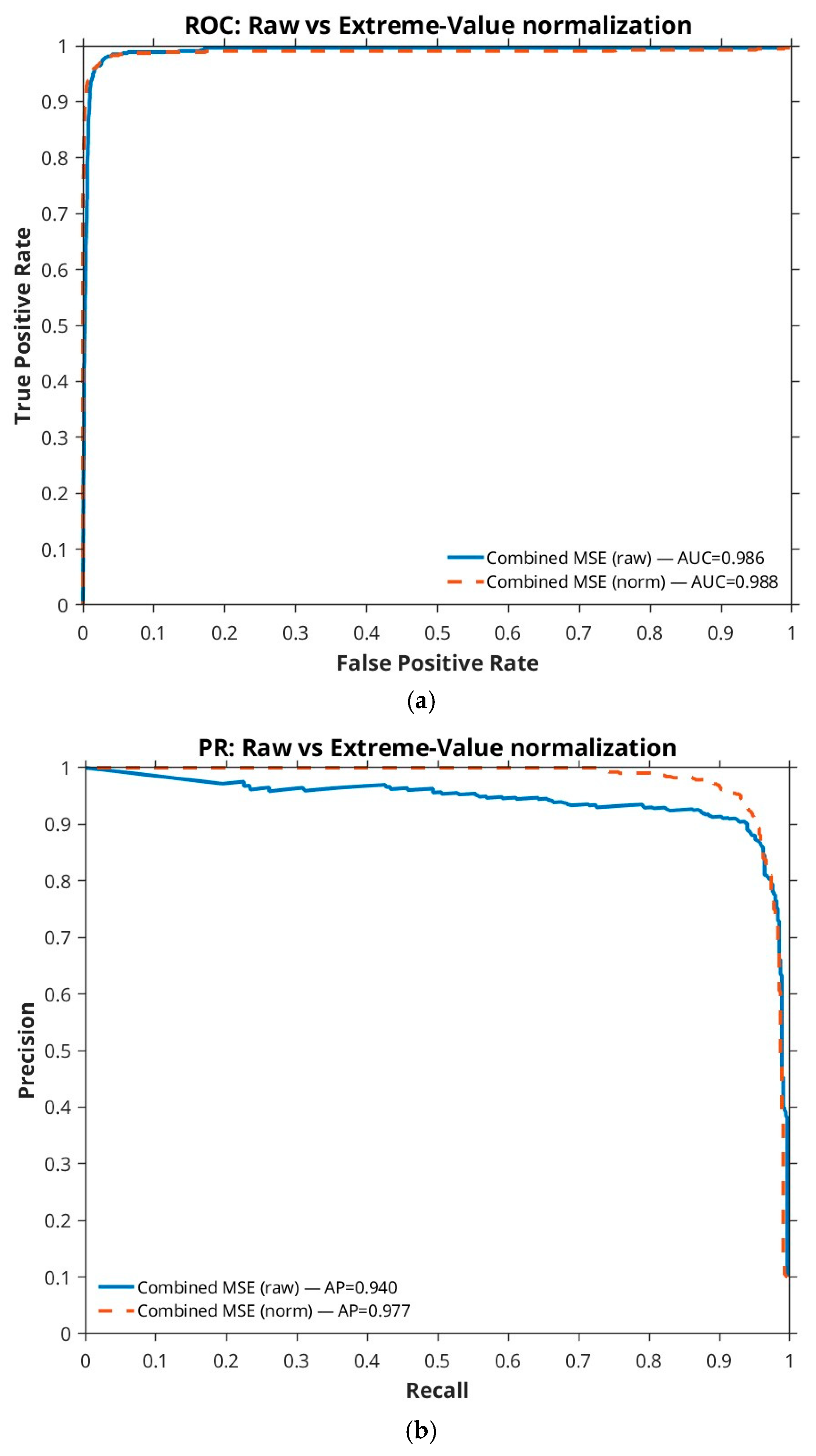 Figure 8b), (ii) smoother PR curves with reduced oscillations (indicating stable operating points), and (iii) a 3–5% improvement in PR-AP and ROC-AUC. These gains, visible in
