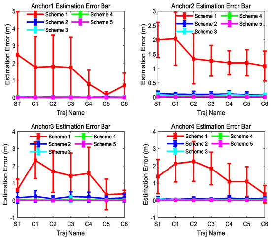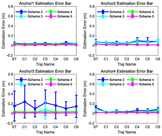 Scheme 2~5 anchor estimation error bar results of the 300th observation number for different trajectories in Figure 8.