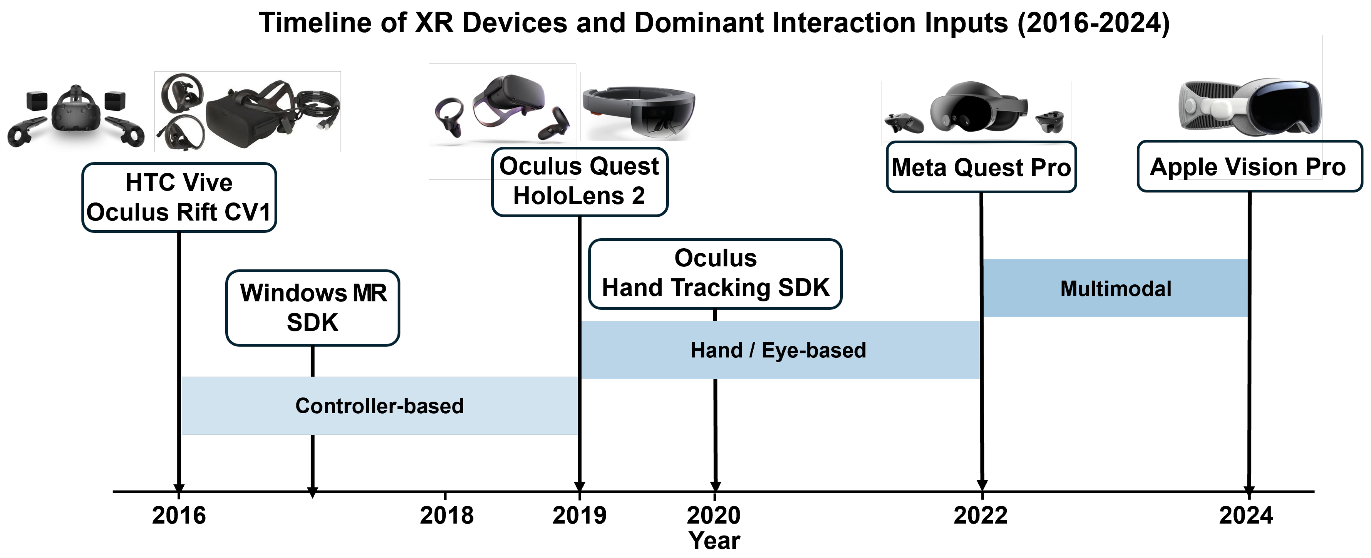 Chicago/Turabian StyleKim, Hyejin, Sukwon Lee, and Changgu Kang. 2026. "From Controllers to Multimodal Input: A Chronological Review of XR Interaction Across Device Generations" Sensors 26, no. 1: 196. https://doi.org/10.3390/s26010196