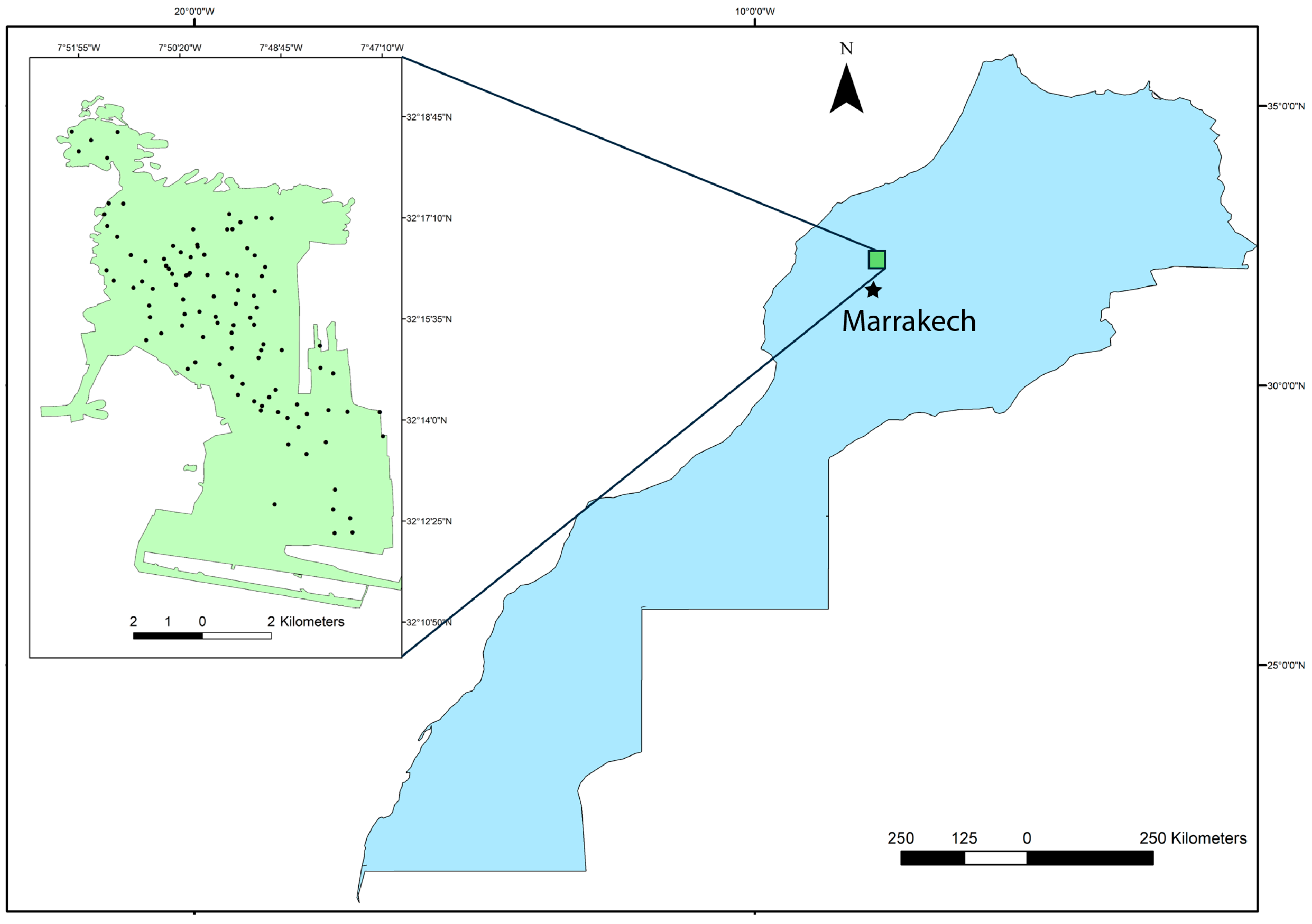 The Benguerir open-pit phosphate mine (32°15′51″ N, 7°49′32″ W), operated by the OCP Group, is located approximately 70 km north of Marrakesh in the Gantour phosphate basin of central Morocco (