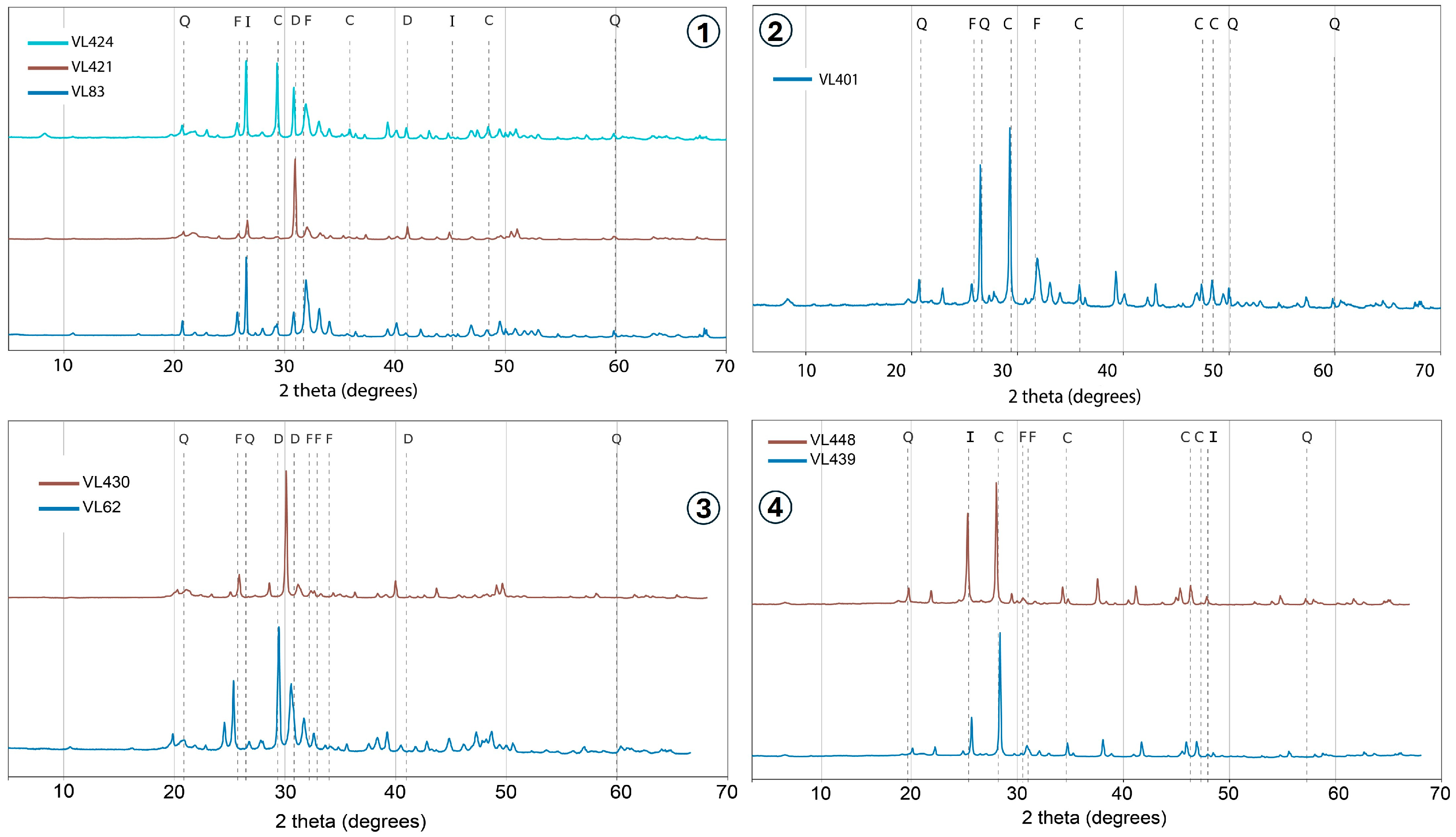 This study reinforces the methodological synergy between VNIR-SWIR spectroscopy and HHXRF. Spectroscopy offers rapid identification of mineral phases based on molecular vibrational features, particularly useful for detecting clays and carbonates. HHXRF, in turn, provides quantitative elemental data (e.g., for Ca, Mg, K, and P), which supports and constrains spectral interpretations, especially for spectrally ambiguous or weakly featured phases such as apatite.