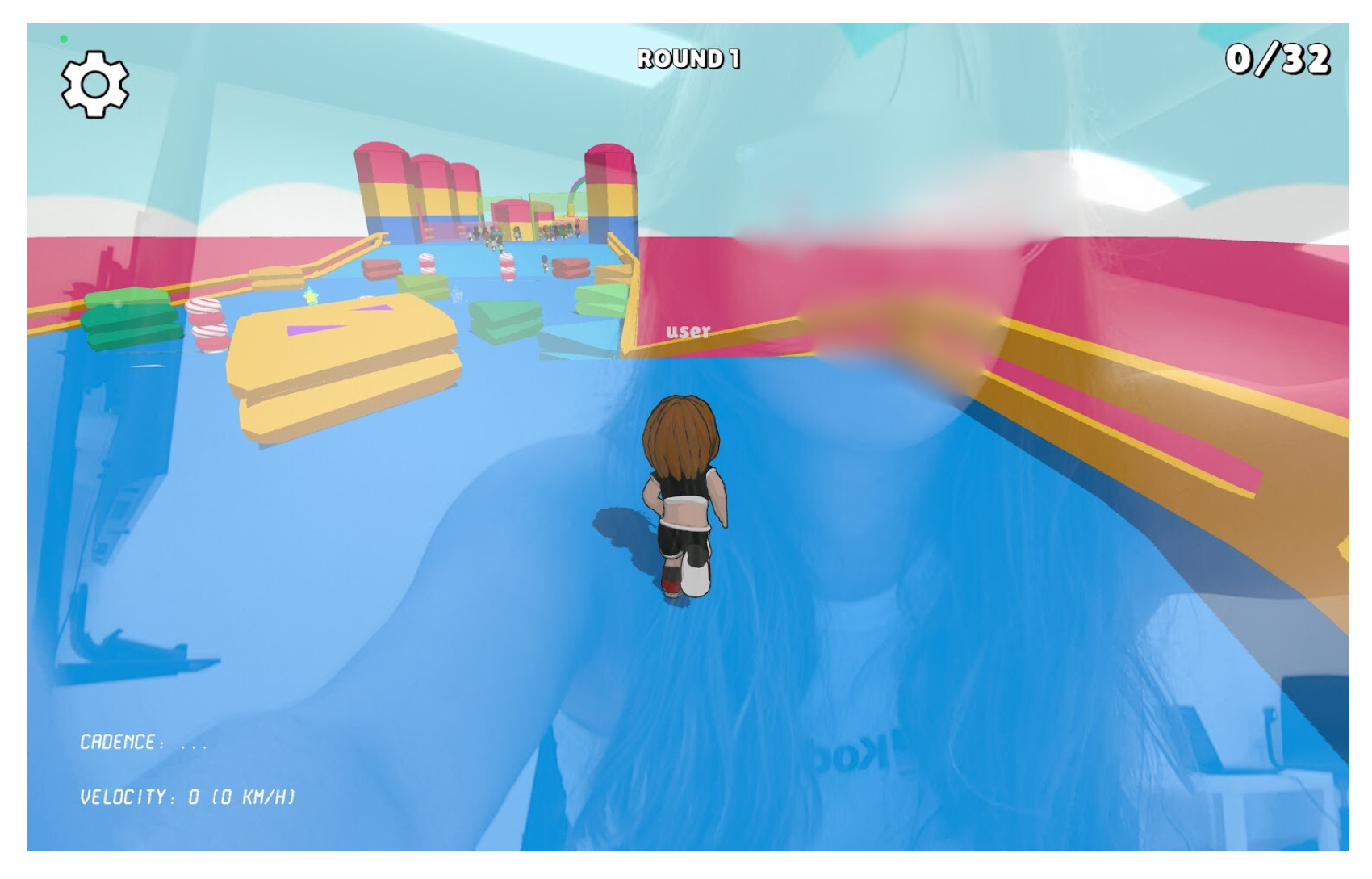 The avatar’s in-game speed and direction are continuously adjusted based on the user’s cadence and lateral head movements. For an enhanced immersive experience, the game can be mirrored onto a Smart TV placed in front of the treadmill, offering a larger and more engaging visual environment.