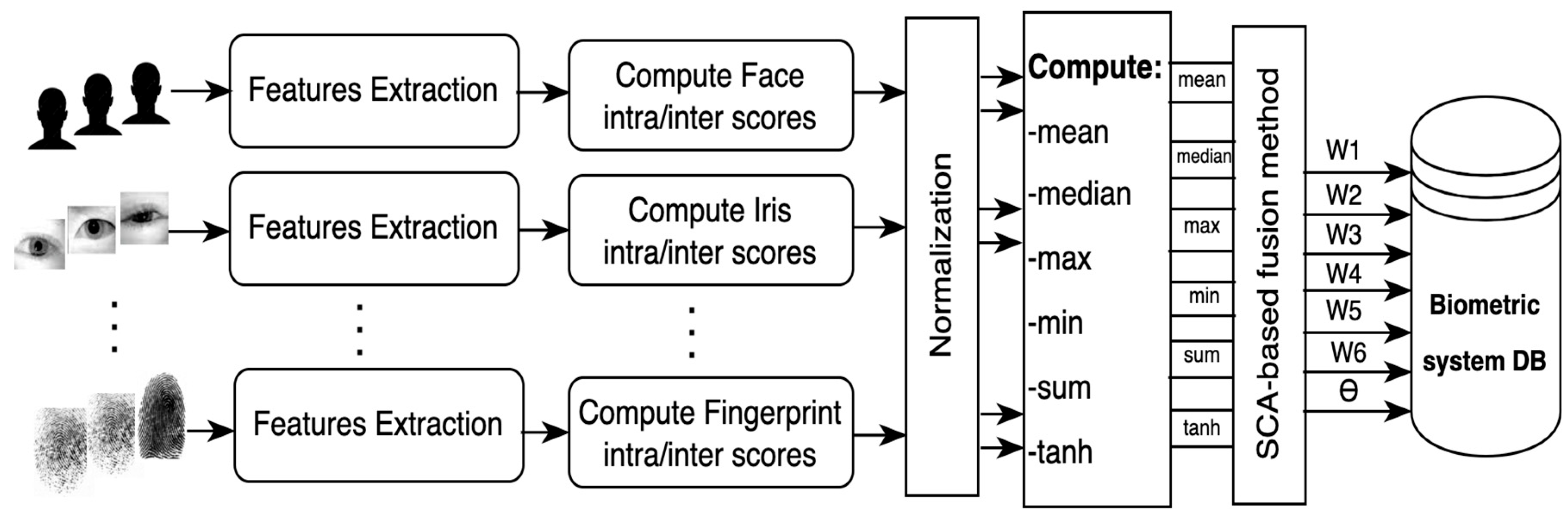 - Proposes a novel SCA-based adaptive score fusion framework for multimodal biometrics;