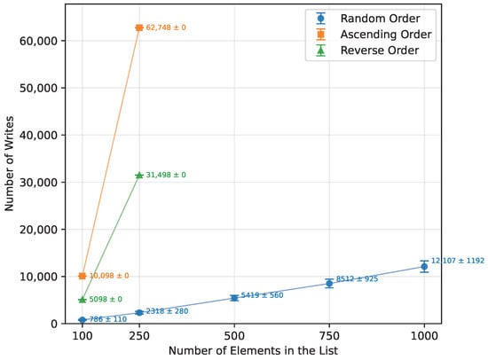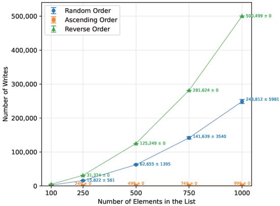 • It quantifies the combined impact of execution time, number of array-element writes, and measured SRAM usage across different input sizes and data orderings, highlighting the practical limits at which individual algorithms cease to be viable on RAM-constrained boards such as the Arduino Uno.