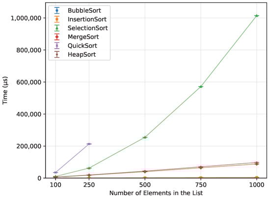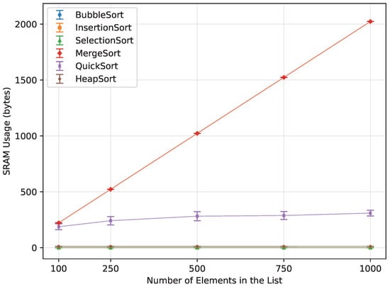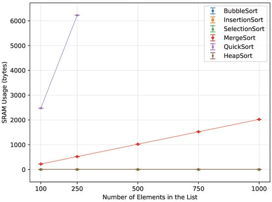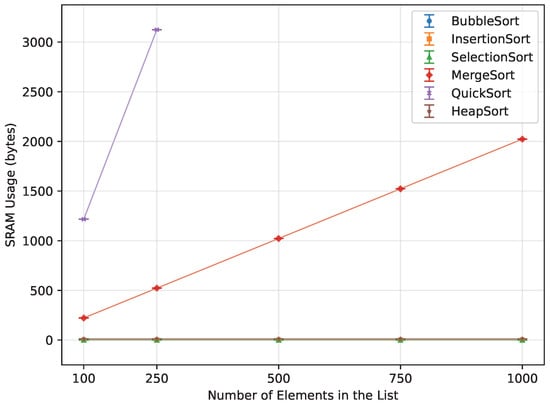 Experimental comparisons of classical sorting algorithms on general-purpose computers have also been reported in the literature. These works typically measure execution time (and sometimes memory usage) for canonical algorithms such as Bubble Sort, Insertion Sort, Selection Sort, Merge Sort, Quick Sort, and Heap Sort across a range of input sizes and data characteristics [12,13,14]. However, they are usually conducted on desktop, server, or high-performance platforms with abundant RAM and deep cache hierarchies, where memory capacity is rarely the limiting factor.