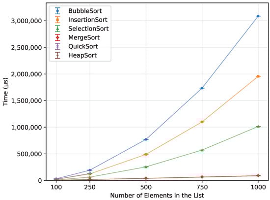 In this subsection, we briefly review the six classical sorting algorithms that constitute the focus of our experimental study: Bubble Sort, Insertion Sort, Selection Sort, Merge Sort, Quick Sort, and Heap Sort. Together, they cover both quadratic-time ( O ( n 2 ) ) and O ( n log n ) algorithms that are widely used as pedagogical examples and baseline methods in textbooks and software libraries. The selection intentionally excludes heavily optimized or hardware-specialized variants so that the results capture the behavior of straightforward, “textbook-style” implementations on 8-bit AVR Arduino-class microcontrollers.