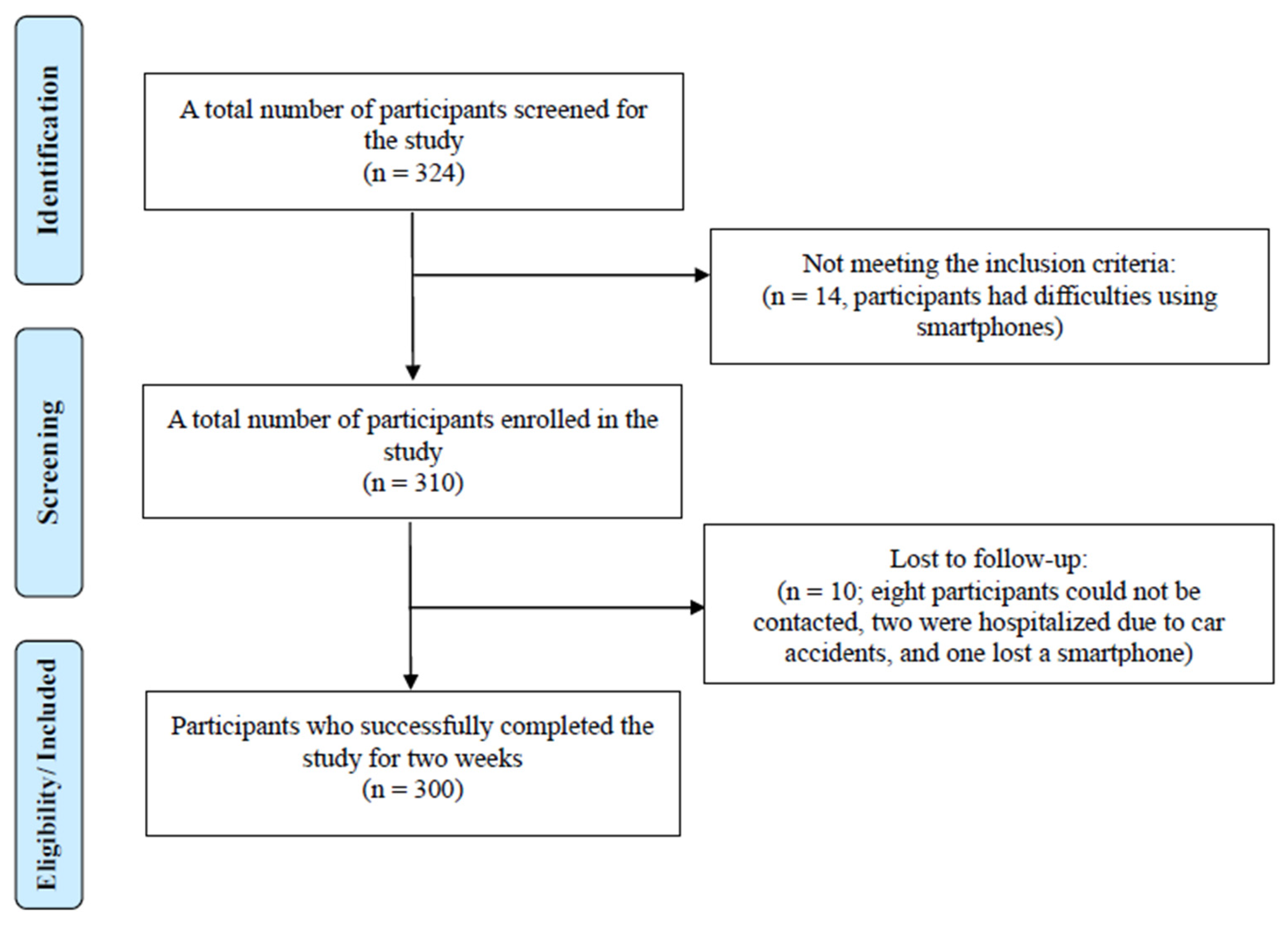 - Trifan, A.; Oliveira, M.; Oliveira, J.L. Passive sensing of health outcomes through smartphones: Systematic review. JMIR Mhealth Uhealth 2019, 7, e12649. [Google Scholar] [CrossRef] [PubMed]