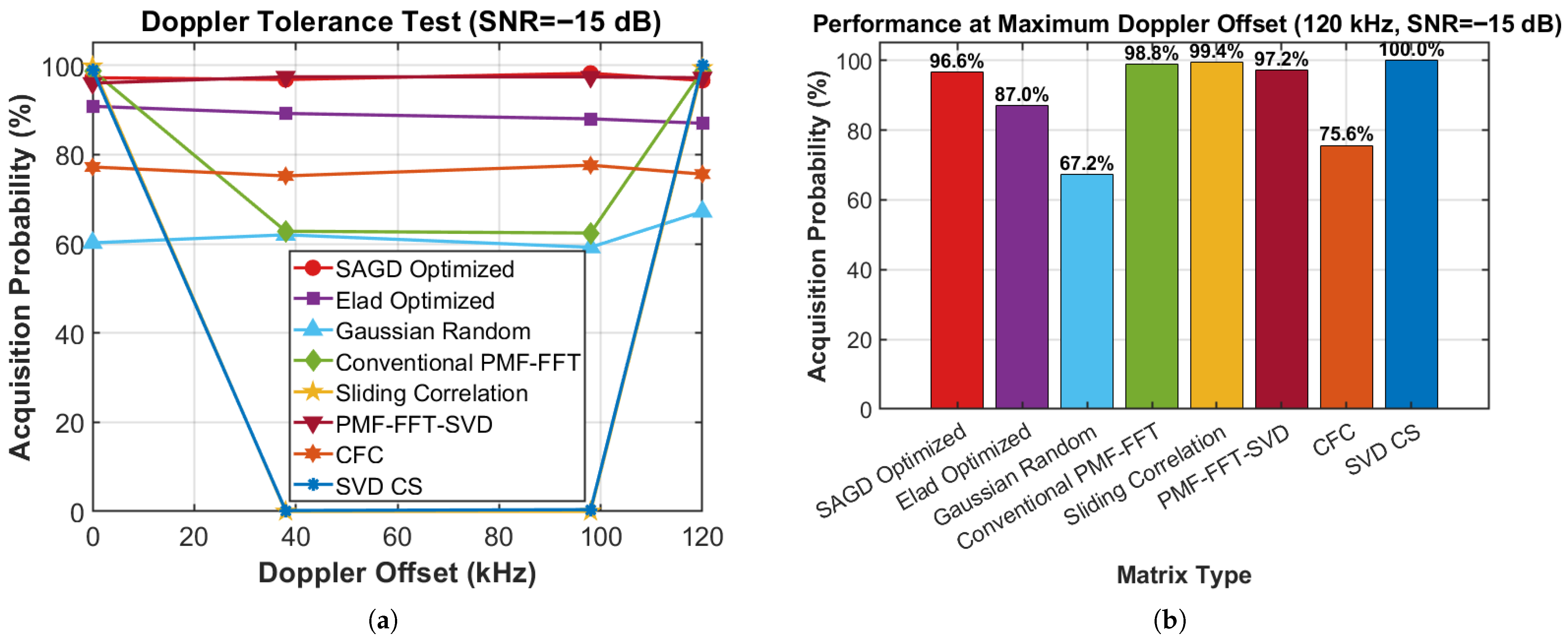 ). Overall, these results demonstrate that coherence-optimized sensing provides robust acquisition across a wide Doppler-offset range, which is essential for high-dynamic receivers with large Doppler uncertainty.