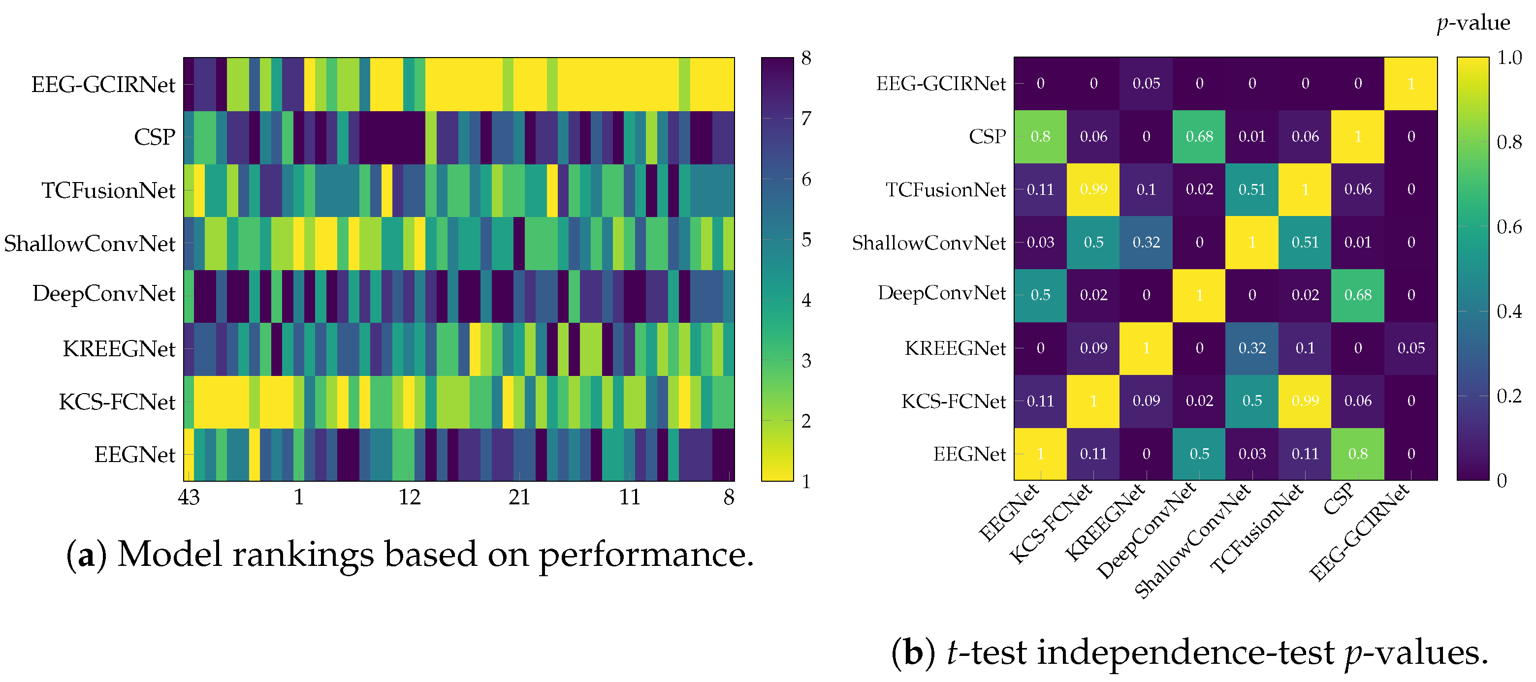 Table 6). In this challenging 5-class setting, EEG-GCIRNet achieved a perfect average ranking of
