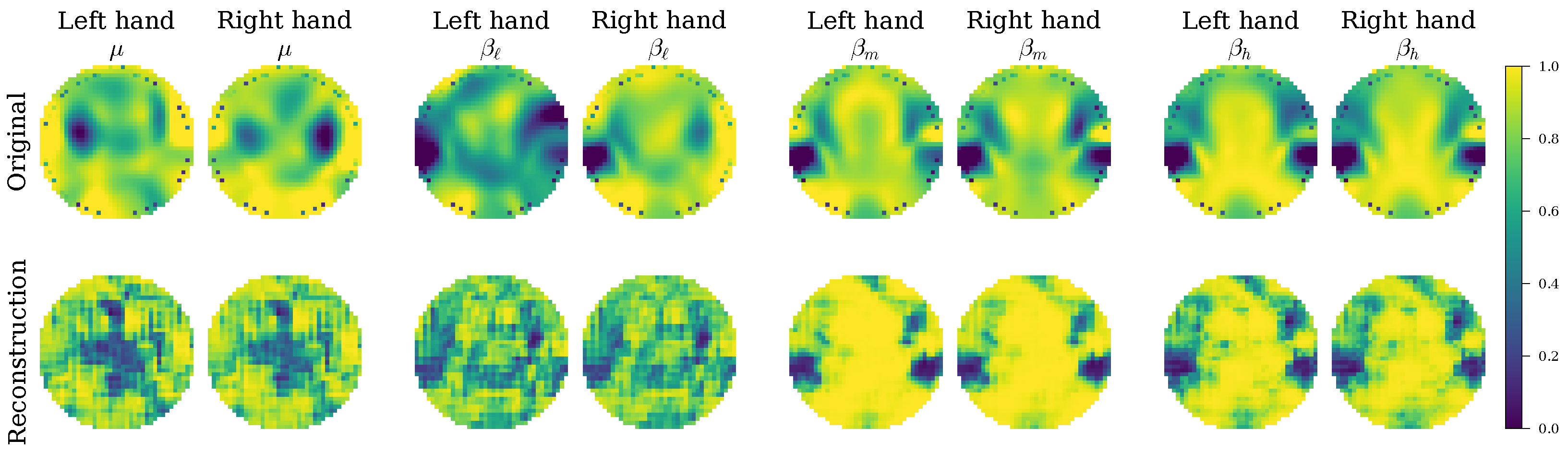 Despite the promising results, this study has several limitations that must be acknowledged. First, while the framework was validated on two distinct datasets (GigaScience and EEGMMIDB), the evaluation was restricted to motor imagery paradigms. This constrains the generalizability of our findings to other BCI paradigms (e.g., P300, SSVEP) with different temporal characteristics. Second, although the model demonstrated adaptive behavior, the hyperparameters weighting the loss components were static. This fixed weighting may not be optimal for all subjects, and no strategies for dynamic, performance-based adaptation were explored. Third, our framework’s reliance on topographic map generation means that it explicitly requires electrode position coordinates as an input. This requirement for spatial metadata is not shared by some benchmark models, such as those that process the EEG signal as a simple (channels × time) matrix. While this could be considered a limitation in a hypothetical scenario where such standard information is unavailable, we frame it as a deliberate methodological choice. Finally, our interpretability analysis, while insightful, remains indirect. The analysis of reconstructions and latent space provides a high-level understanding but does not offer the granular, feature-level attribution that techniques like attention-based visualization can provide.