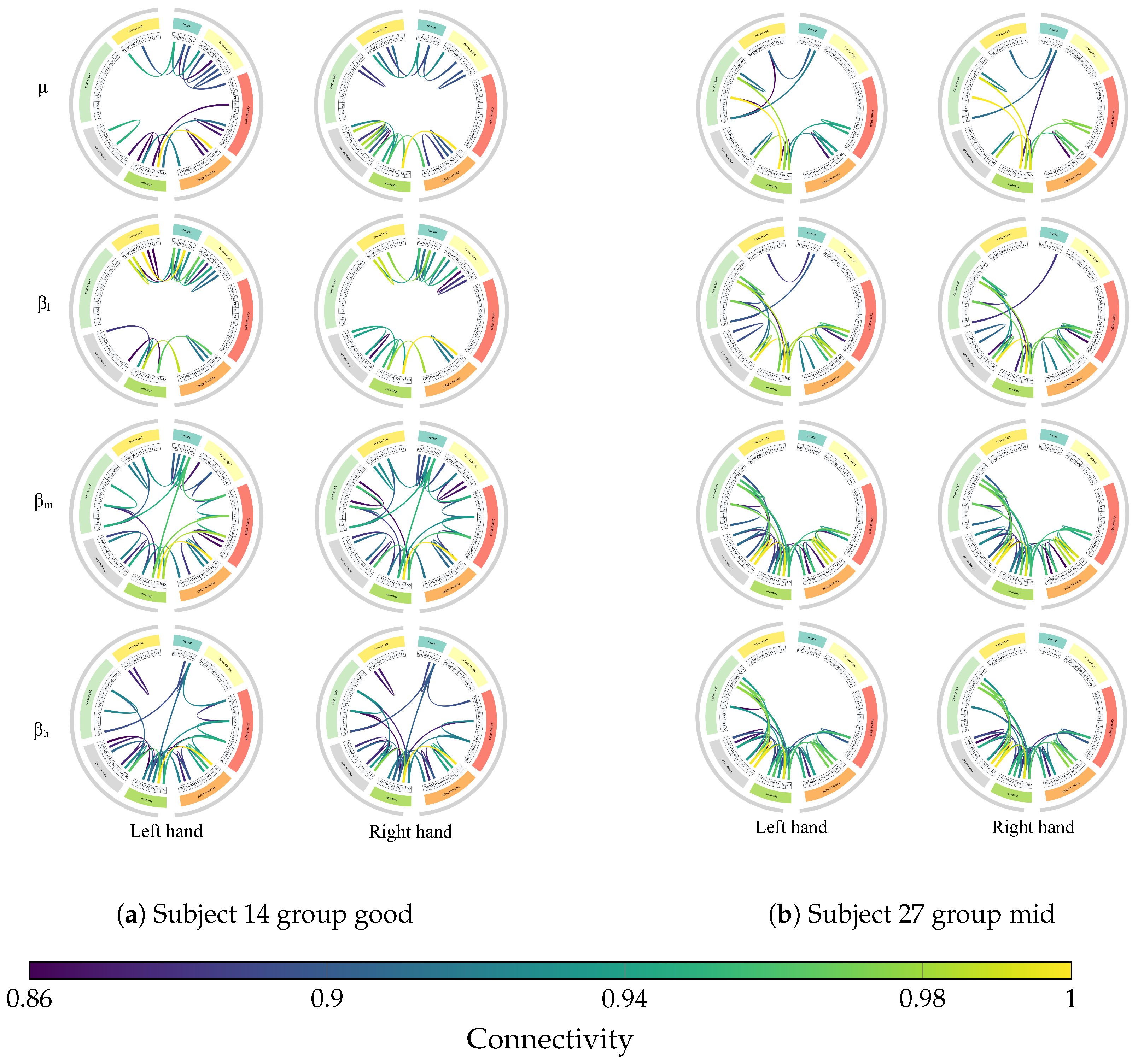 Figure 12). For high-performing subjects, the observed integrated fronto–centro–parietal network supports established findings on the critical role of fronto–parietal and parieto–occipital connectivity in supporting MI performance [