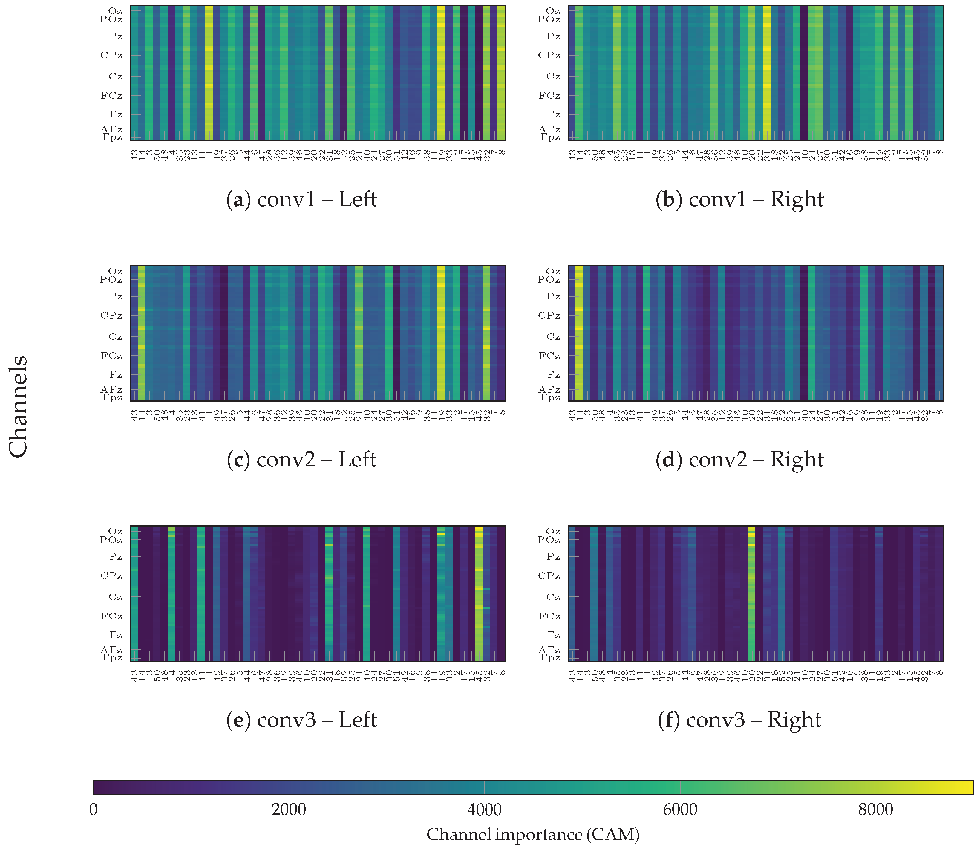 71]. Thus, the specific emphasis on parieto-occipital electrodes in the deepest layers suggests the network leverages visuo-spatial components alongside sensorimotor rhythms, a view supported by studies indicating occipital recruitment and connectivity during visual-motor imagery [