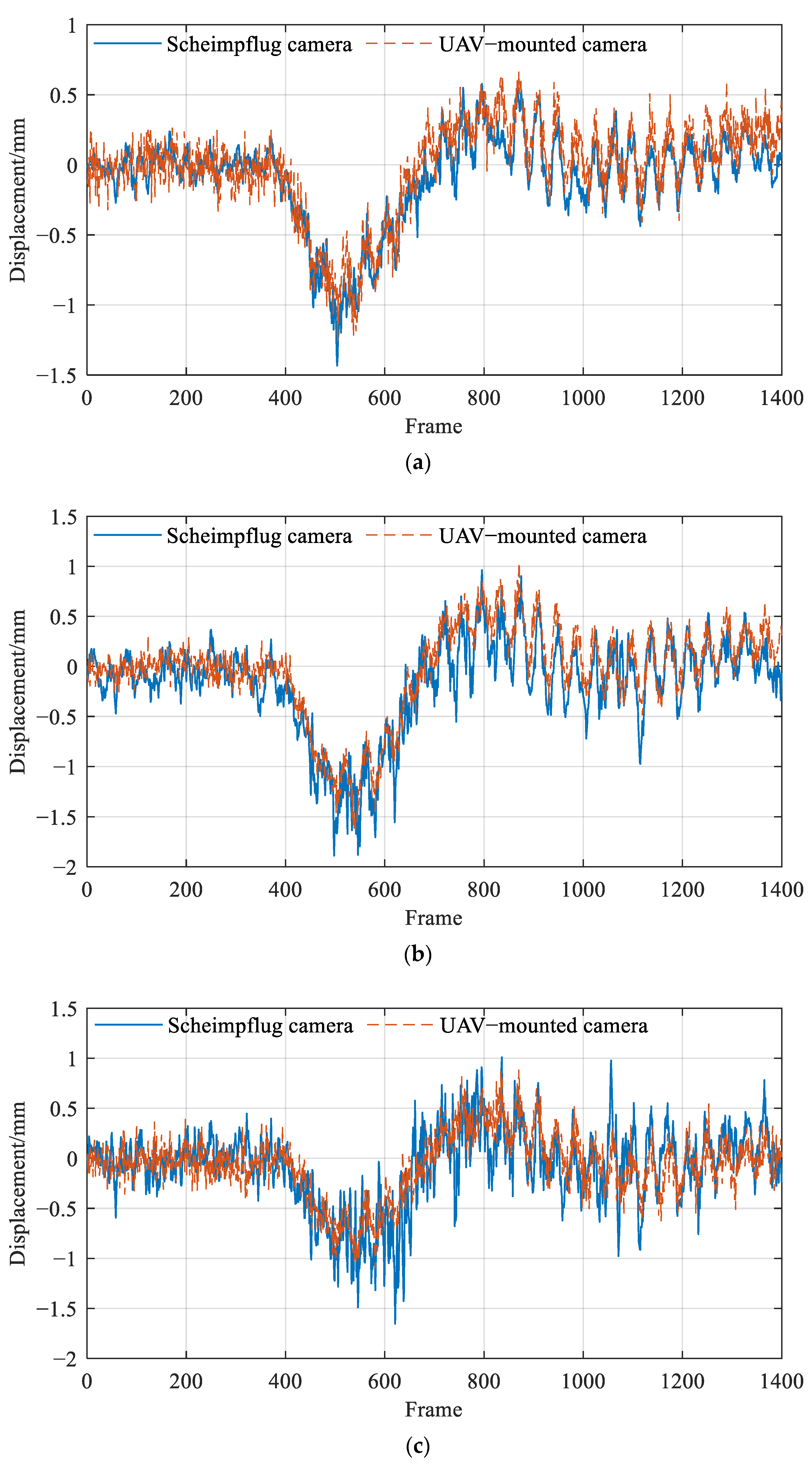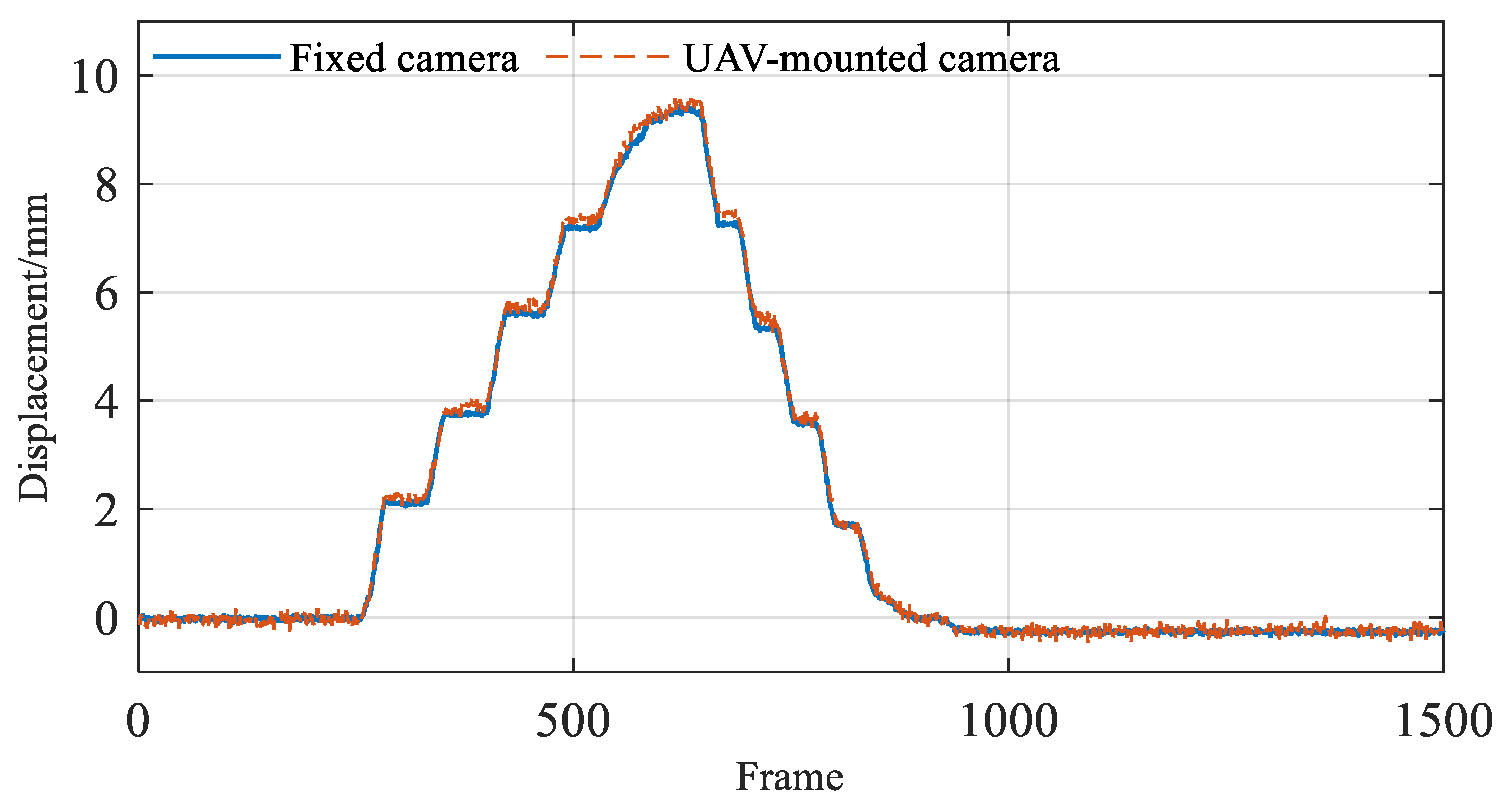 - Ribeiro, D.; Silva, A.; Figueiredo, E.; Calçadaact st, R. Non-contructural displacement measurement using Unmanned Aerial Vehicles and video-based systems. Mech. Syst. Signal Process. 2021, 160, 107869. [Google Scholar] [CrossRef]