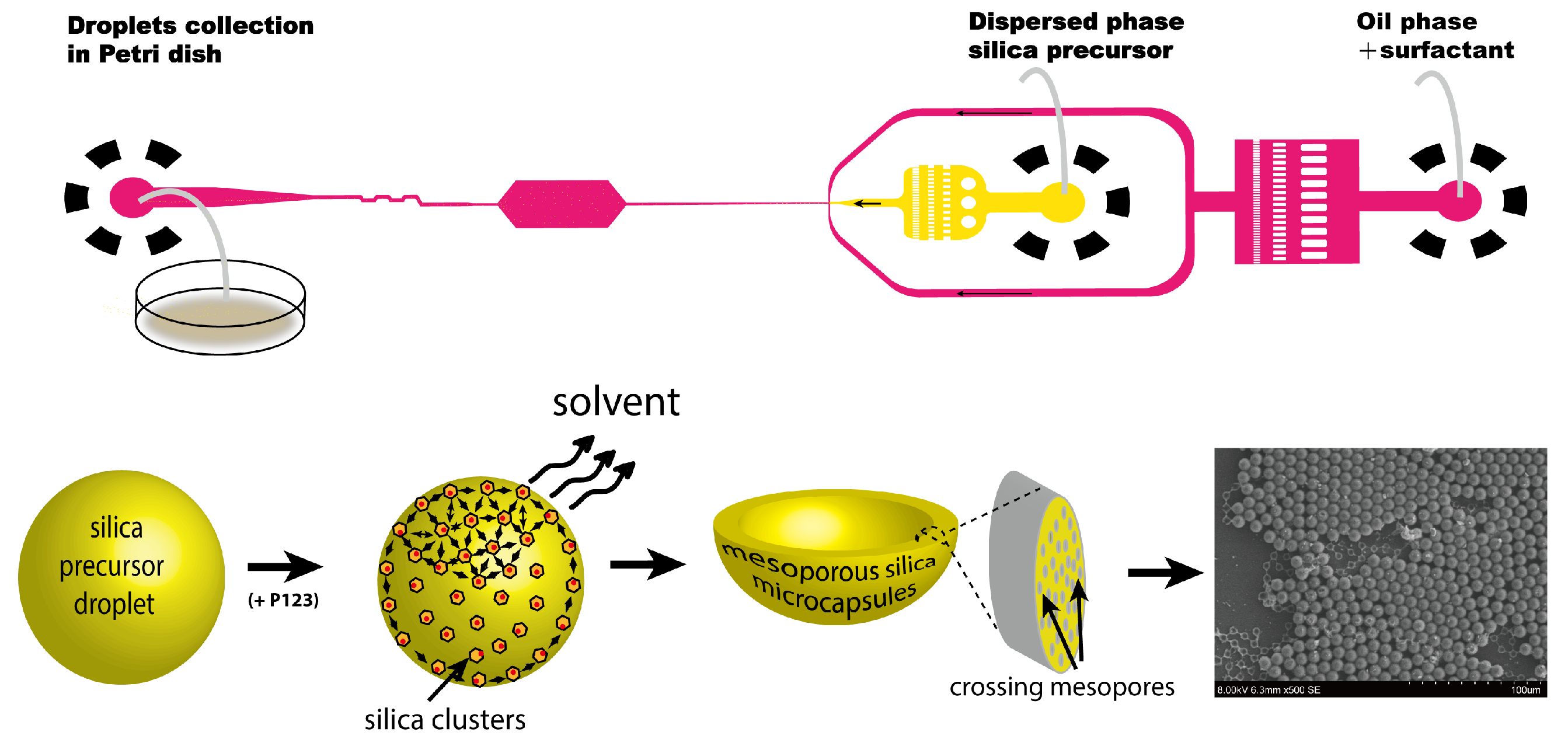 - Bchellaoui, N.; Hayat, Z.; Mami, M.; Dorbez-Sridi, R.; El Abed, A.I. Microfluidic-assisted formation of highly monodisperse and mesoporous silica soft microcapsules. Sci. Rep. 2017, 7, 16326. [Google Scholar] [CrossRef]
