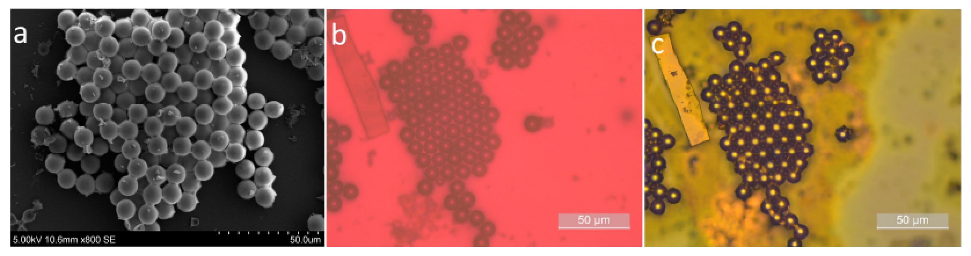 3.2. Observation of Whispering Gallery Modes in Mesoporous Hollow Silica Capsules