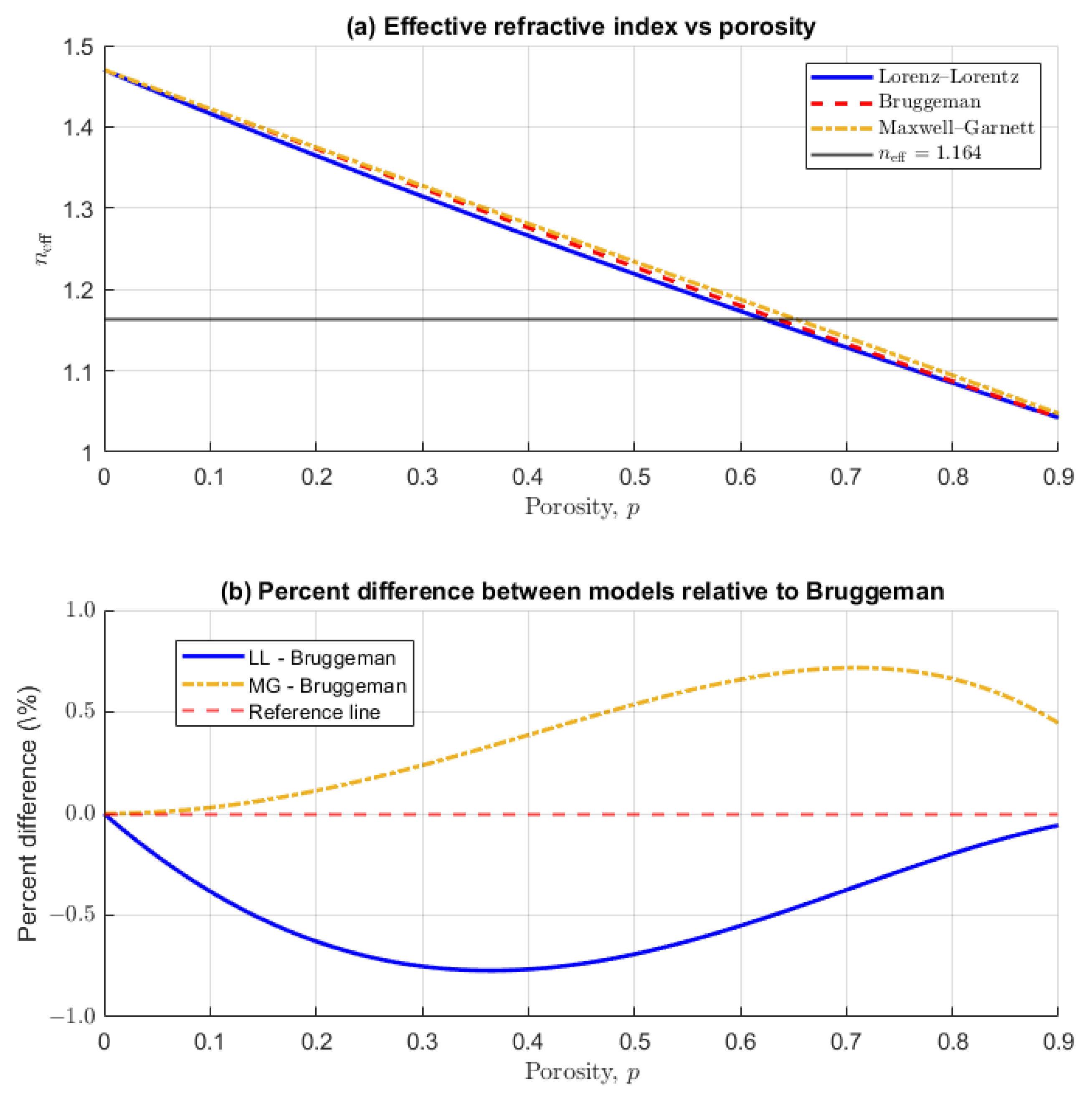 - Pore connectivity: The superior performance of Bruggeman over Maxwell–Garnett corroborates the interconnected nature of the mesoporous network, consistent with type H1 hysteresis observed in adsorption isotherms for P123-templated materials.