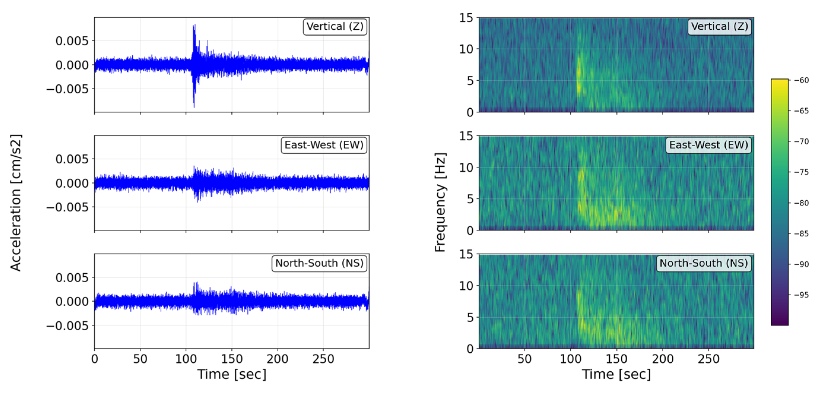 - Automatic Seismic–Non-Seismic Discrimination: A deep learning classifier distinguishes ground motions produced by earthquake activity from those generated by non-seismic sources, such as traffic, industrial machinery, wind, or electronic interference.
