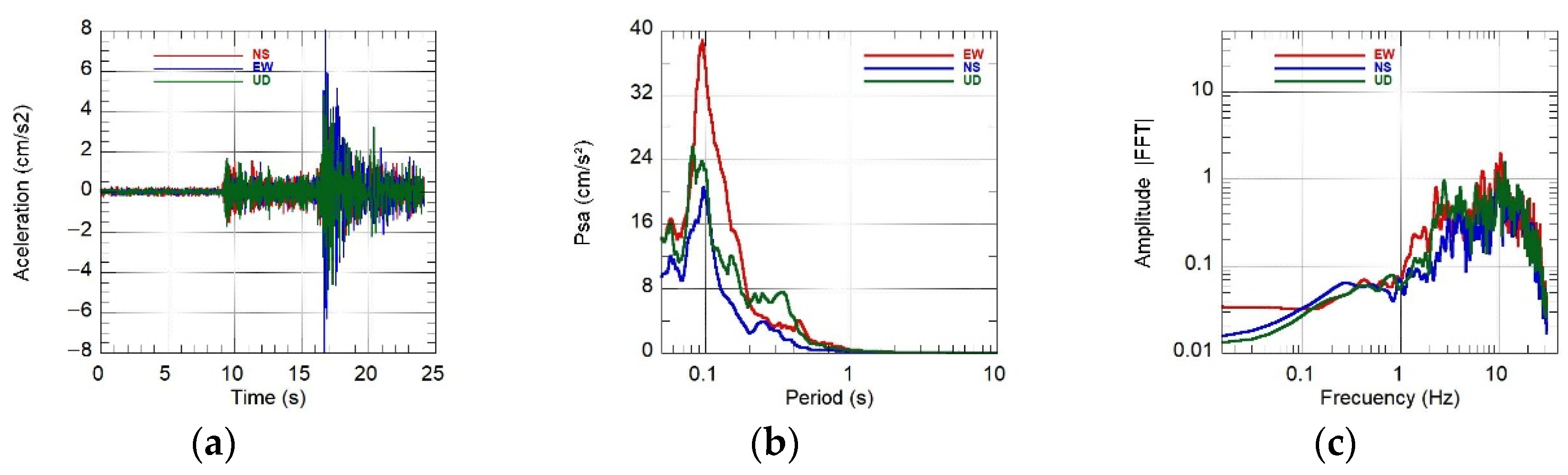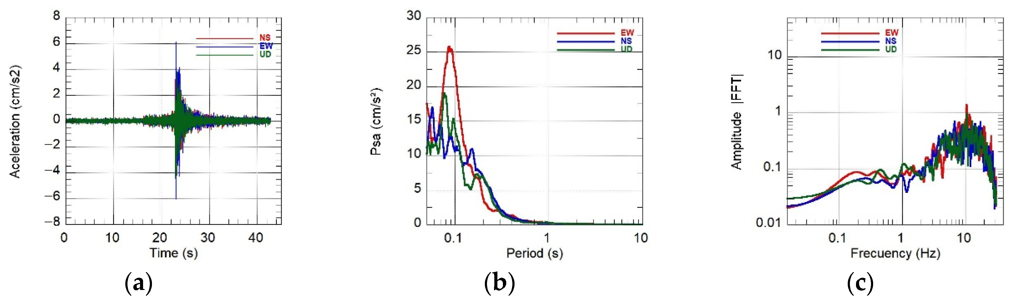 - Hudson, D.E. Reading and Interpreting Strong-Motion Accelerograms; Earthquake Engineering Research Institute: Oakland, CA, USA, 1979. [Google Scholar]