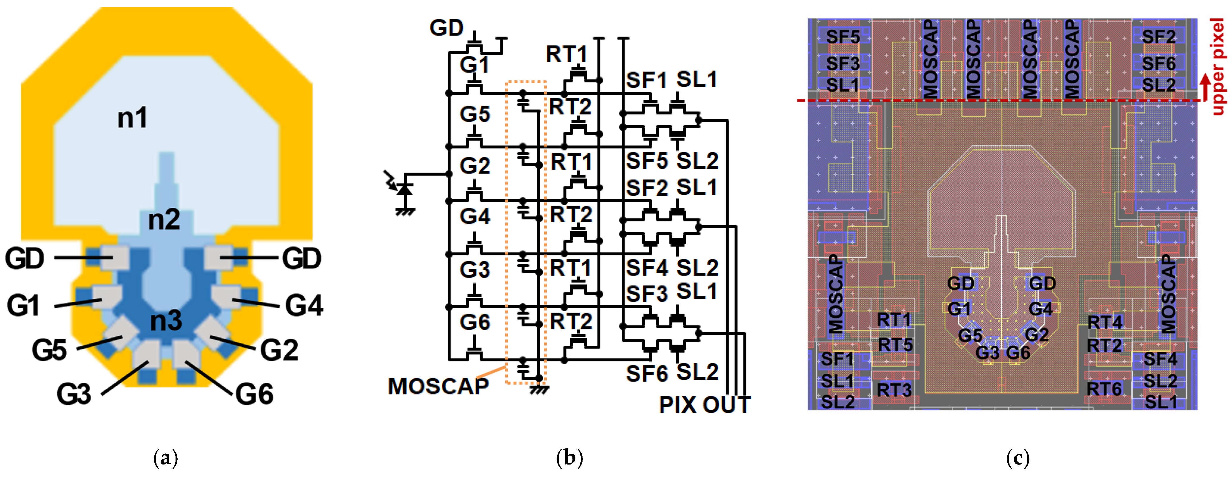 - Jegannathan, G.; Seliuchenko, V.; Dries, T.V.d.; Lapauw, T.; Boulanger, S.; Ingelberts, H.; Kuijk, M. An Overview of CMOS Photodetectors Utilizing Current-Assistance for Swift and Efficient Photo-Carrier Detection. Sensors 2021, 21, 4576. [Google Scholar] [CrossRef] [PubMed]