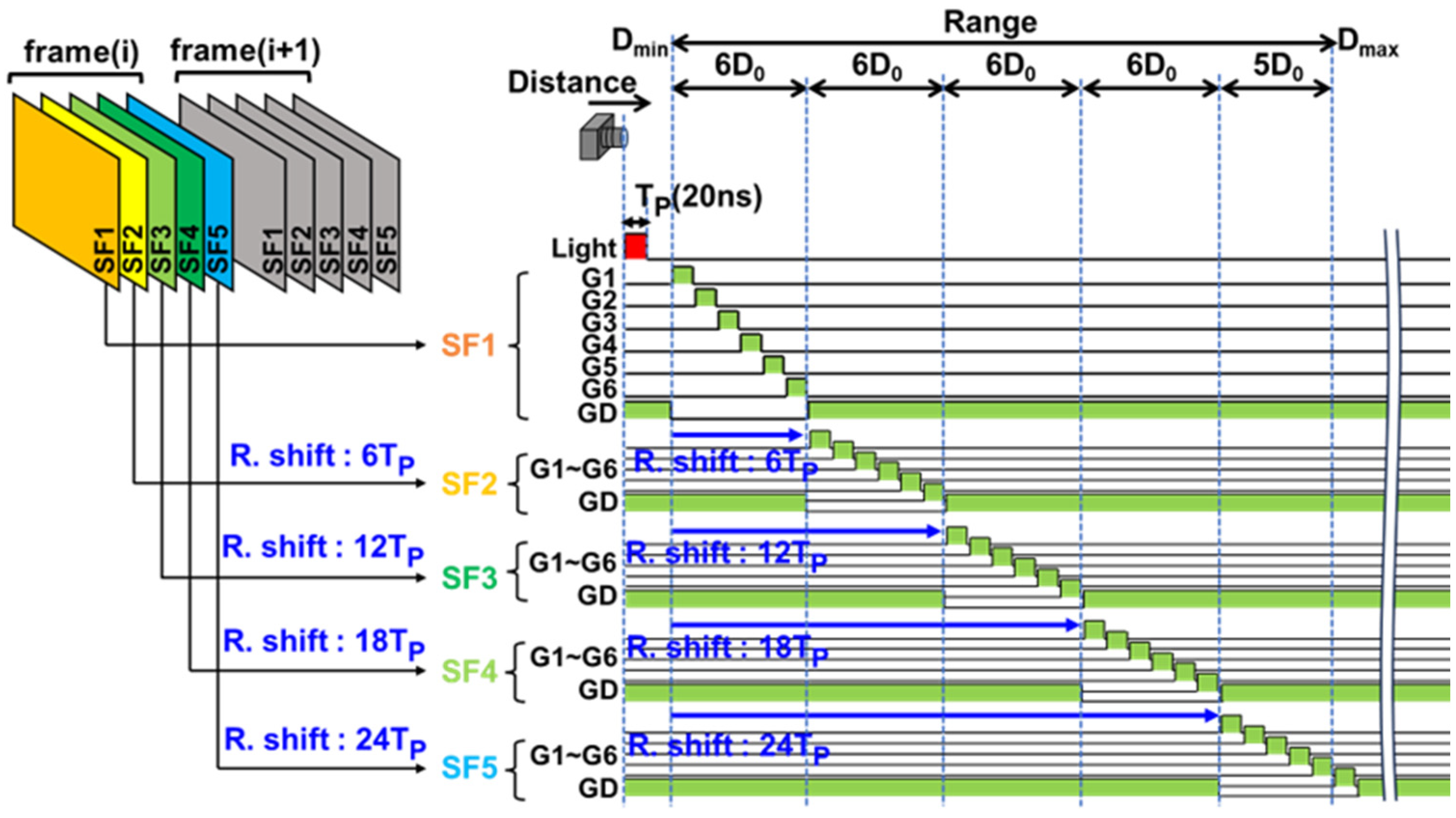 - Mars, K.; Ageishi, S.; Hakamata, M.; Sakita, T.; Iguchi, D.; Hayakawa, J.; Yasutomi, K.; Kagawa, K.; Kawahit, S. A Multi-Zone Light-Tracing Hybrid Time-of-Flight CMOS Image Sensor for Low Power Long-Range Outdoor Operations. In Proceedings of the International Image Sensor Workshop, Hyogo, Japan, 2–5 June 2025. [Google Scholar] [CrossRef]