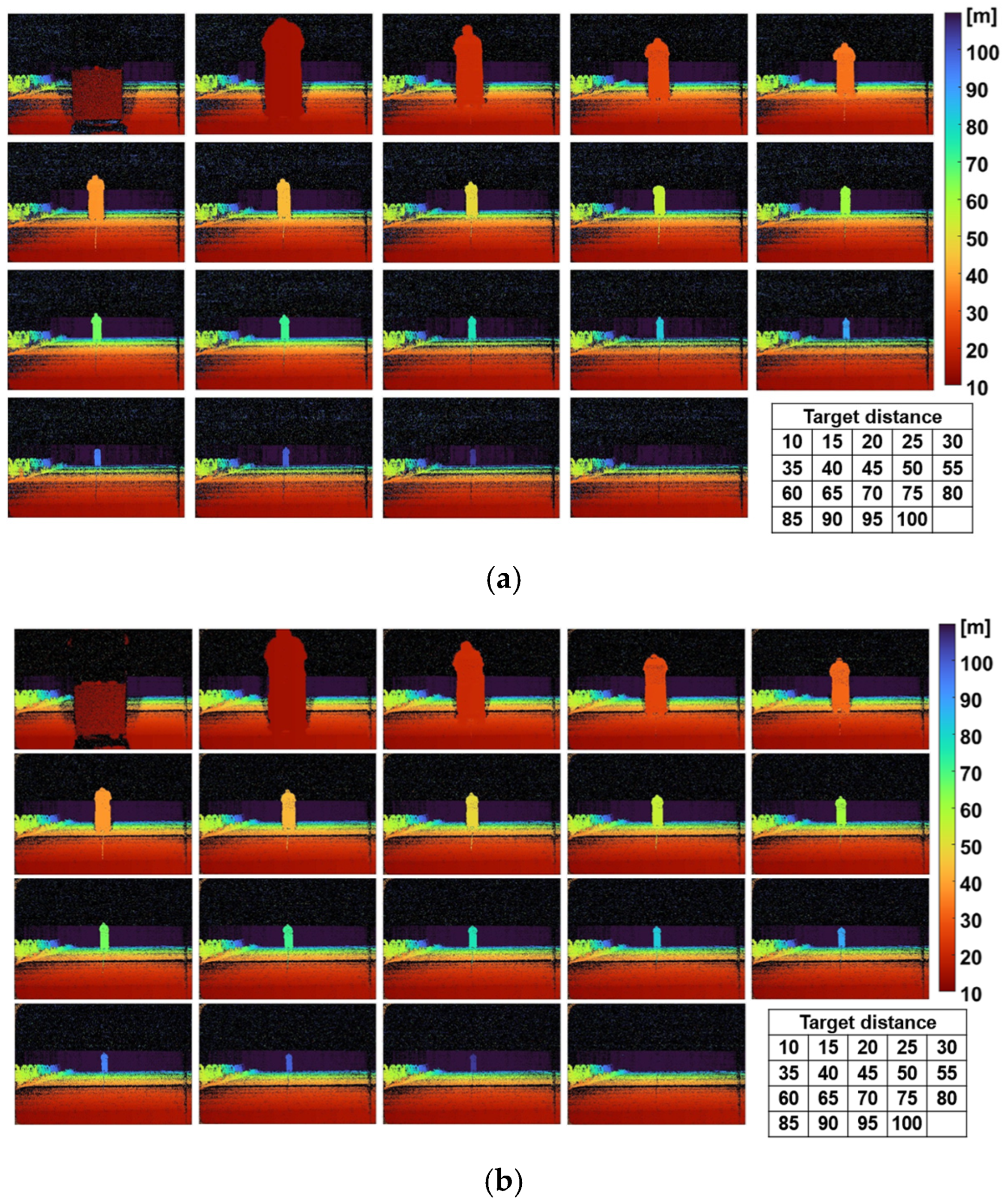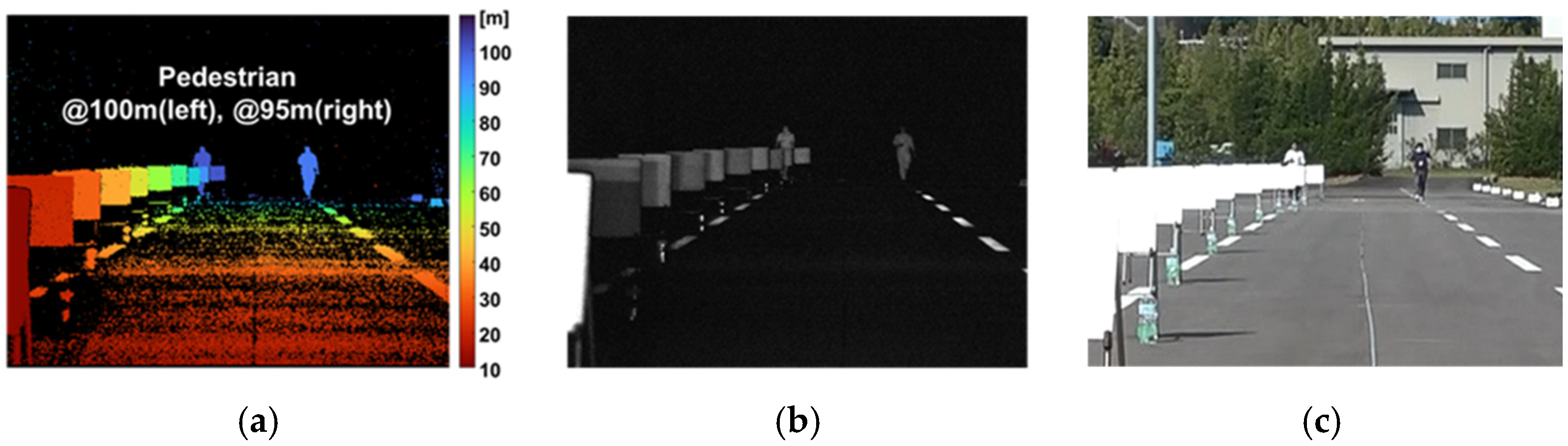 - Okino, T.; Yamada, S.; Sakata, Y.; Kasuga, S.; Takemoto, M.; Nose, Y.; Koshida, H.; Tamaru, M.; Sugiura, Y.; Saito, S.; et al. A 1200 × 900 6 µm 450 fps Geiger-Mode Vertical Avalanche Photodiodes CMOS Image Sensor for a 250m Time-of-Flight Ranging System Using Direct-Indirect-Mixed Frame Synthesis with Configurable-Depth-Resolution Down to 10 cm. In Proceedings of the IEEE International Solid-State Circuits Conference, San Francisco, CA, USA, 16–20 February 2020. [Google Scholar] [CrossRef]