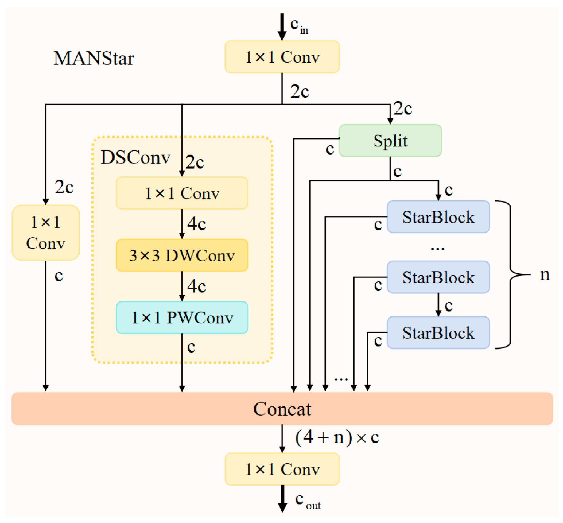 Figure 8, the input feature map of the MANStar module has