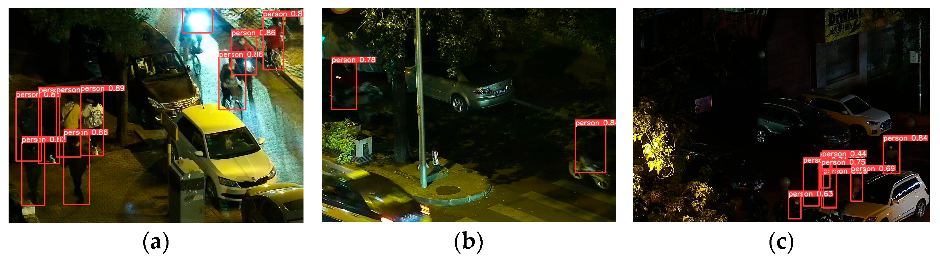24] improved the YOLOv8-ECSH model for nighttime pedestrian and vehicle detection, utilizing the ECSH module to enhance recall. However, it suffers from insufficient feature relabeling under nighttime noise and relatively static multi-scale fusion, making it difficult to adapt to small pedestrians in shadows [