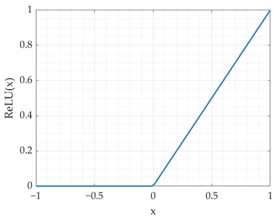 RBFNN can effectively capture local features in nonlinear function approximation. To complement this capability with global feature modeling, this paper integrates the RBFNN in parallel with MLP, also known as artificial neural network (ANN). The MLP typically consists of an input layer, one or more hidden layers, and an output layer. Layers are linearly fully connected, and activation functions are used between them to introduce nonlinear and extract global features of the input. In this paper, the Rectified Linear Unit (ReLU) shown in Figure 5 is selected as the activation function to avoid gradient vanishing during training. Additionally, dropout layers are used in MLP to randomly deactivate a fraction of neurons, training a different “sub-network” each iteration. This prevents over-reliance on specific neurons, thereby reducing co-adaptation and improving model robustness and generalization.