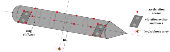 - Liu, S.; Huo, R.; Wang, L. Vibroacoustic Transfer Characteristics of Underwater Cylindrical Shells Containing Complex Internal Elastic Coupled Systems. Appl. Sci. 2023, 13, 3994. [Google Scholar] [CrossRef]