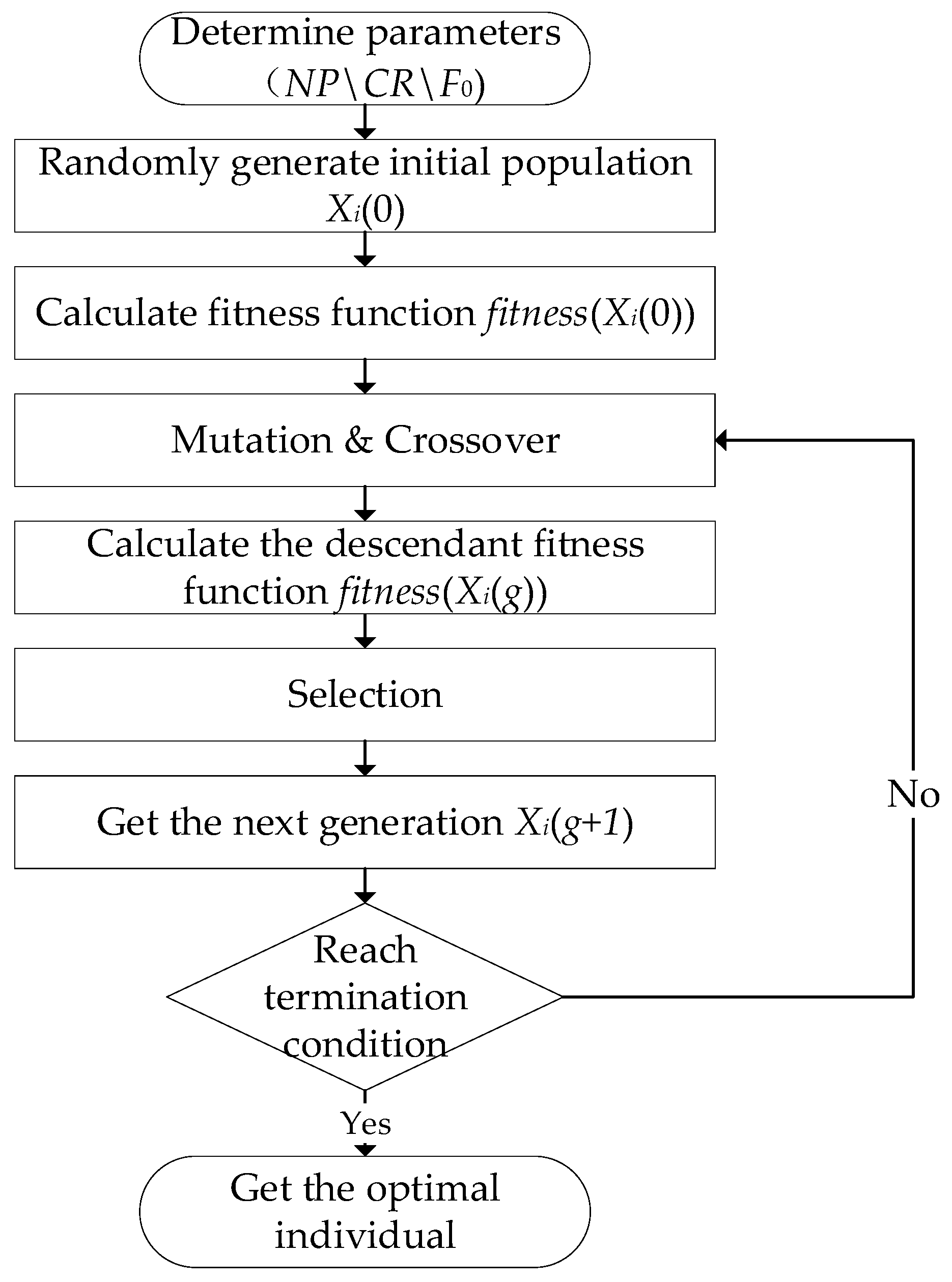 X i ( g + 1 ) = U i ( g + 1 ) , if   f ( U i ( g + 1 ) ) f ( X i ( g ) ) X i ( g ) , otherwise